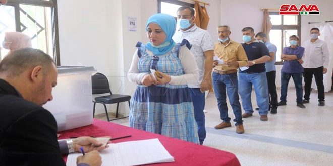 Multitudes de ciudadanos ante los centros electorales de la Universidad Al-Baath