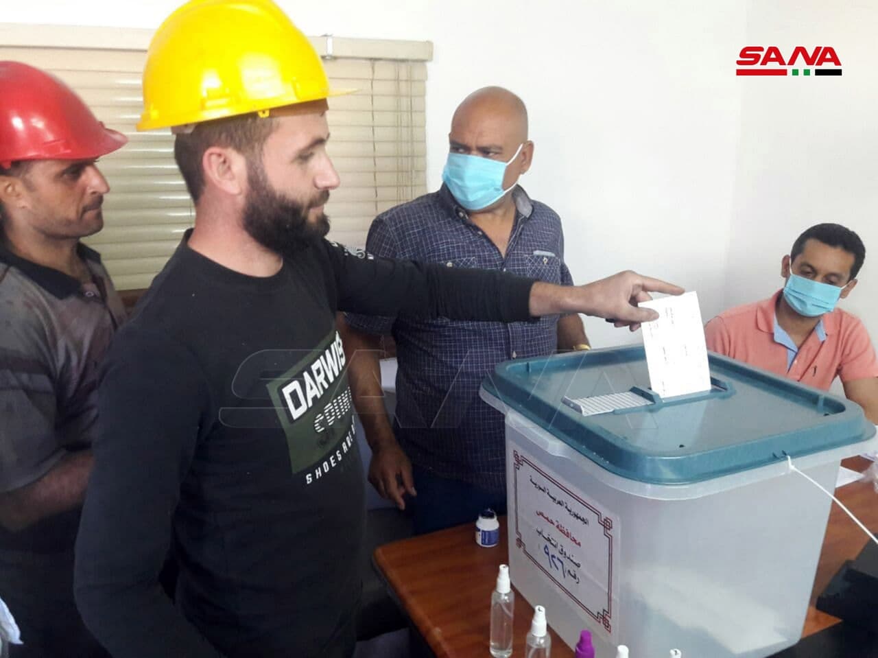 Al son de las máquinas de producción en la Ciudad Industrial de Hassieh en la provincia de Homs, miles de trabajadores votaron hoy en las elecciones presidenciales y eligieron al candidato más idóneo para la próxima etapa en Siria.