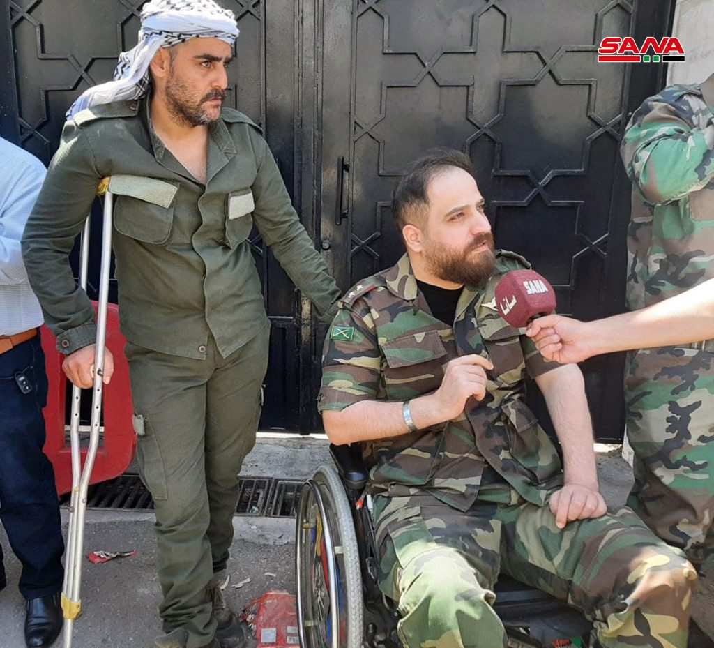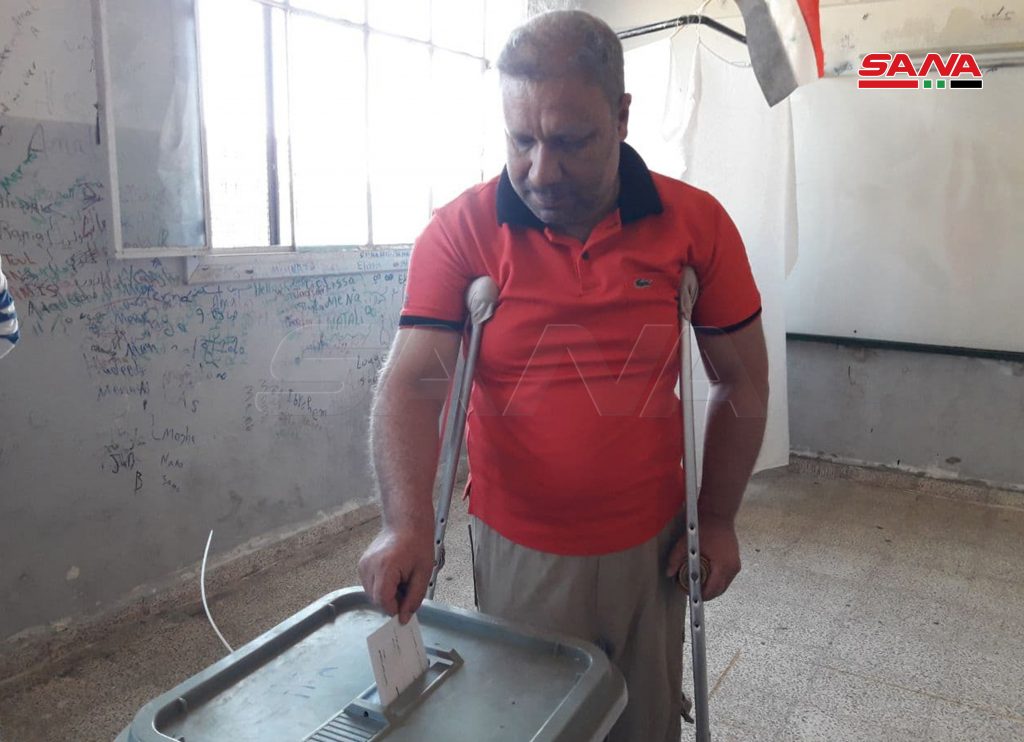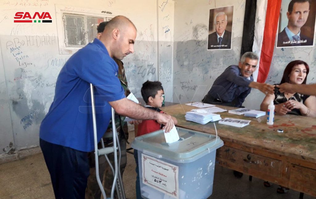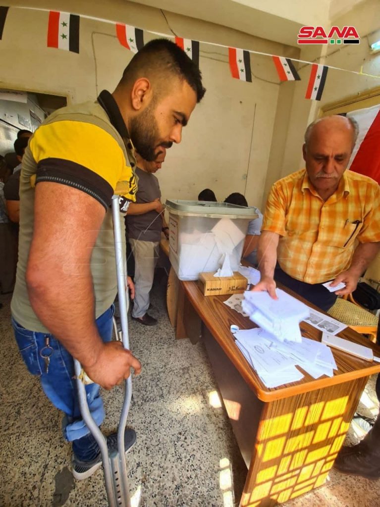 Cientos de soldados sirios heridos en las batallas del honor contra las agrupaciones terroristas hoy participan en las elecciones y acuden a las urnas superando sus heridas y discapacidad.