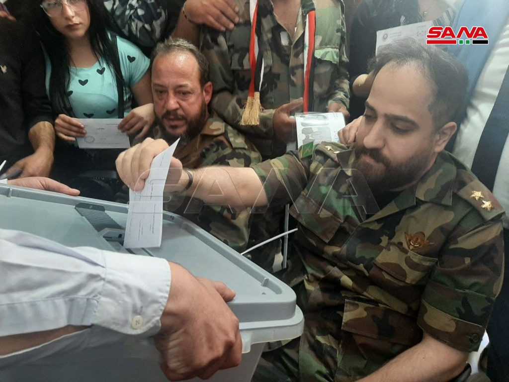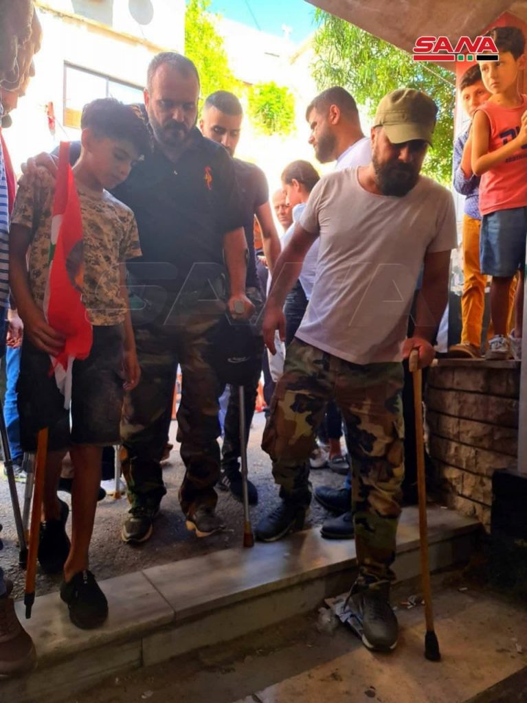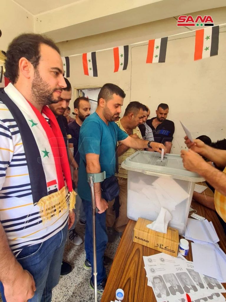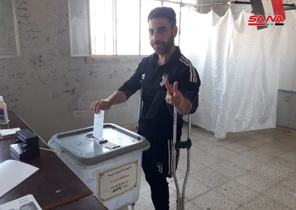 Cientos de soldados sirios heridos en las batallas del honor contra las agrupaciones terroristas hoy participan en las elecciones y acuden a las urnas superando sus heridas y discapacidad.