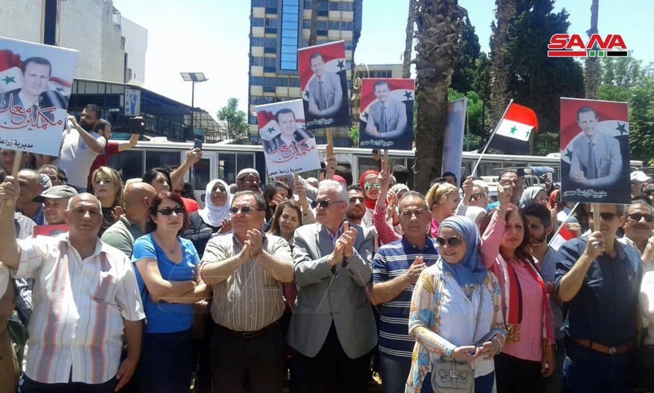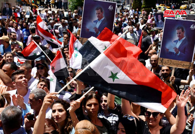 Los participantes izaron banderas nacionales y fotografías del presidente, y destacaron que eligieron al mejor candidato capaz de llevar a Siria a un lugar seguro.