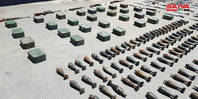 Durante las operaciones de peinado de varias áreas liberadas del terrorismo en cooperación con la población, se encontró un depósito de armas dejado por los terroristas antes de su derrota en el norte de Homs, informó una fuente militar.