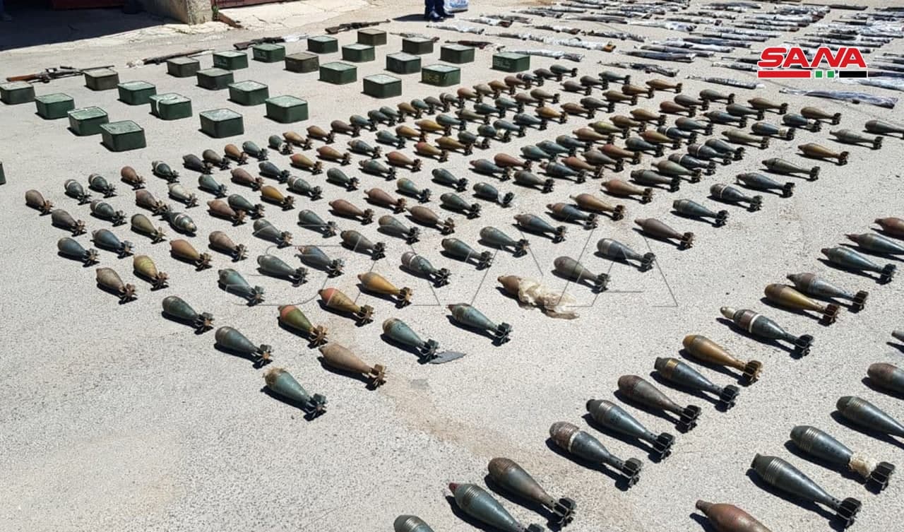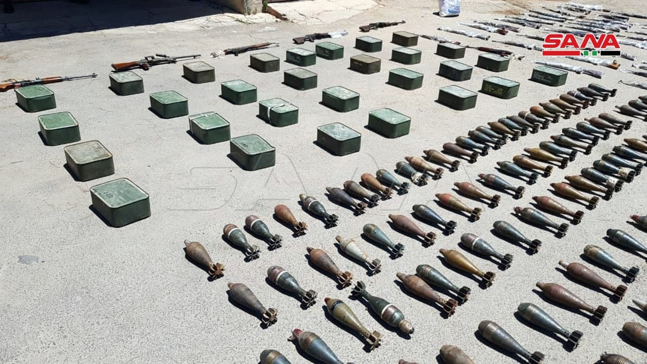 Las autoridades competentes hallaron hoy un almacén de armas y municiones remanente de las agrupaciones terroristas en el norte de la provincia de Homs.