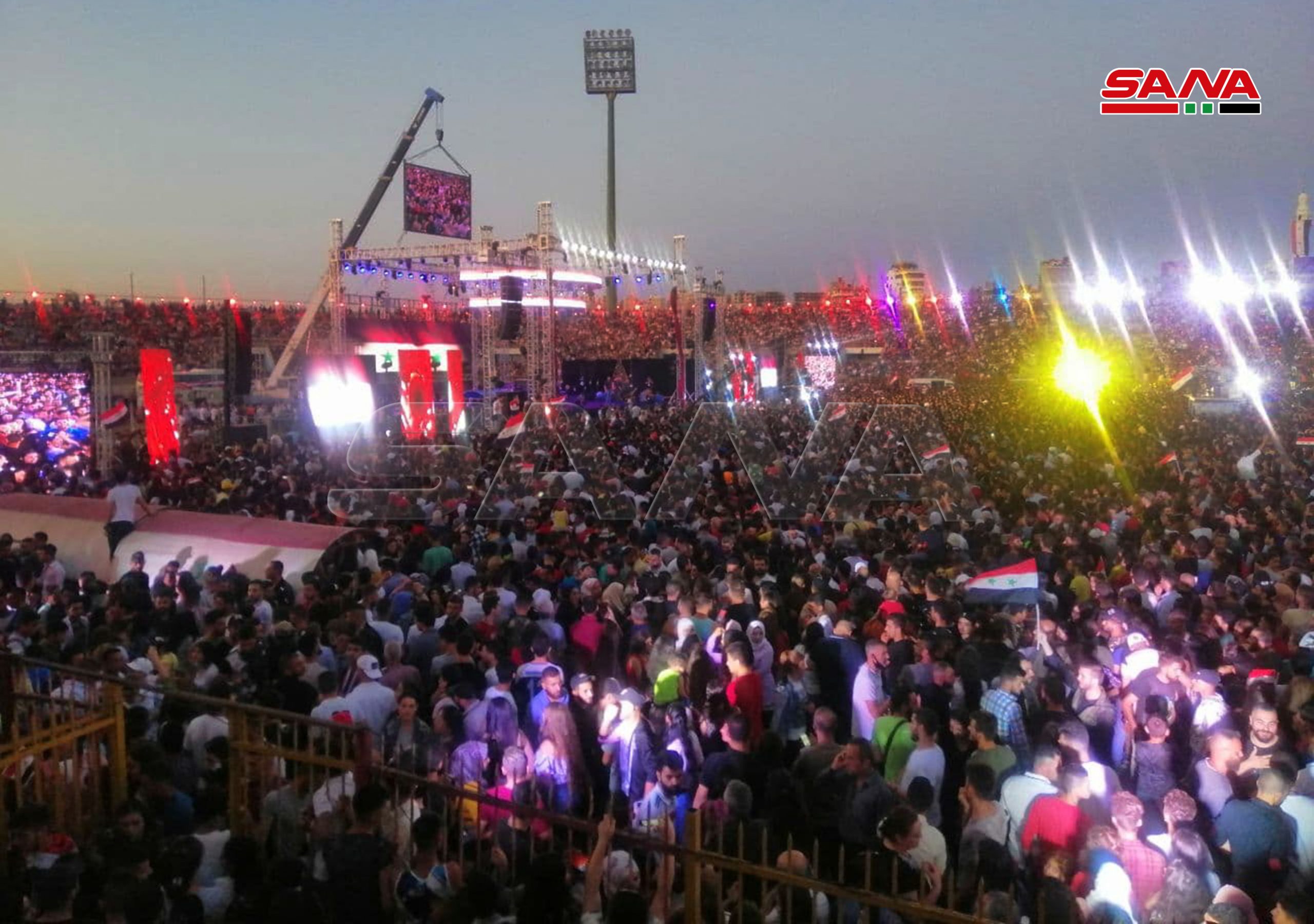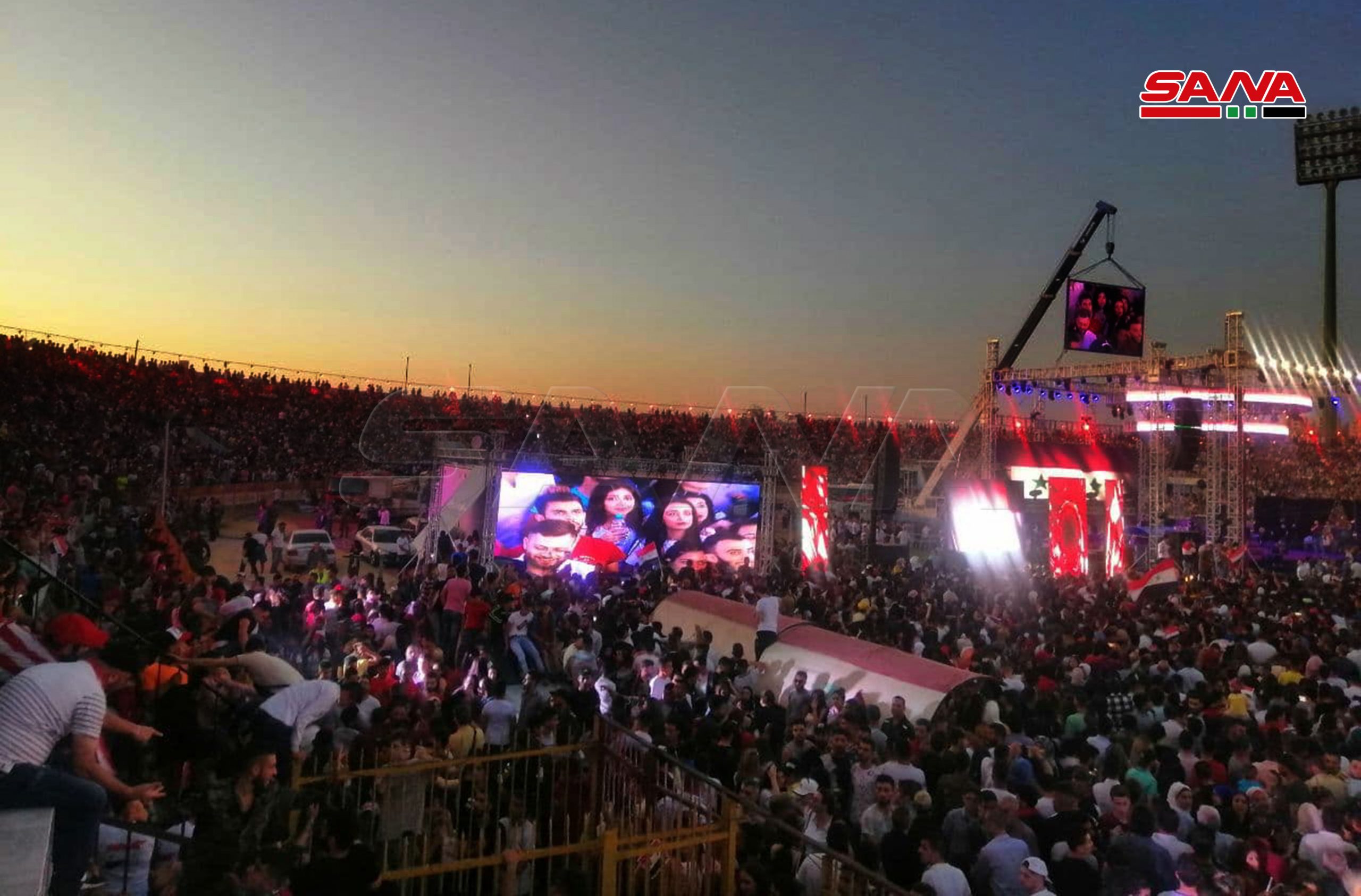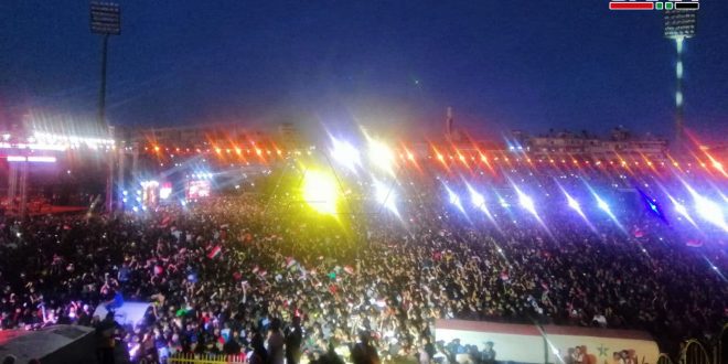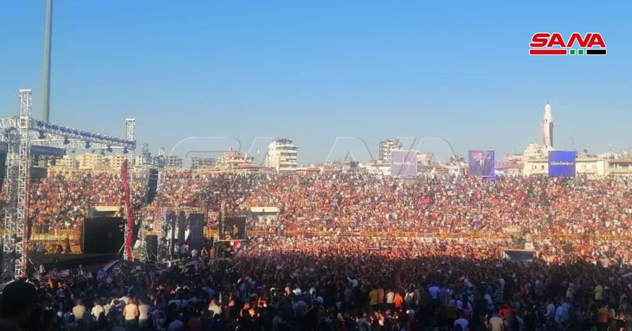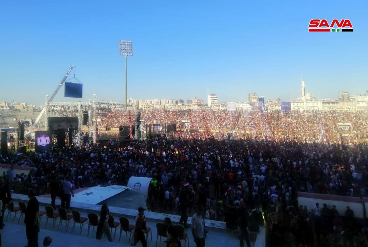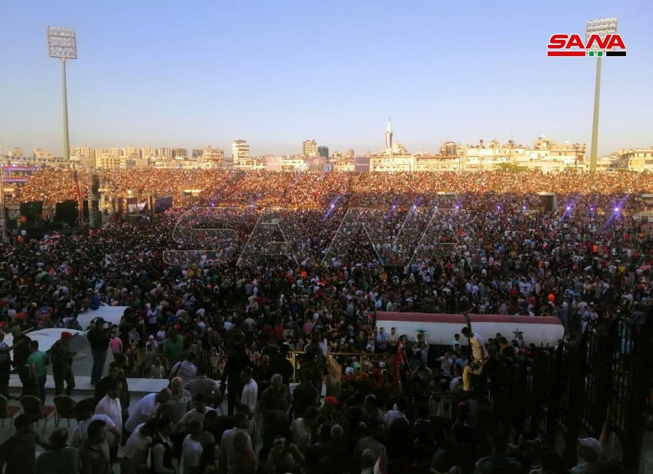 03/06/2021 Latakia, SANA Multitudes de civiles se agrupan en el estadio de al-Basel en Latakia para celebrar reelección del Dr. Bashar al-Assad 2021-06-03 ammar