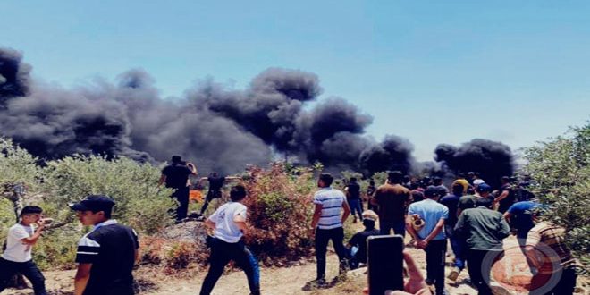 Según la fuente, decenas de palestinos han resultado lesionados por el lanzamiento de gas lacrimógeno y municiones reales por parte de soldados del régimen de ocupación israelí para dispersar a los manifestantes.