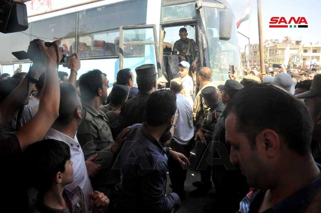26 detenidos de la ciudad de Duma en la región de Ghouta Oriental fueron puestos en libertad hoy en el marco del proceso de reconciliación nacional.
