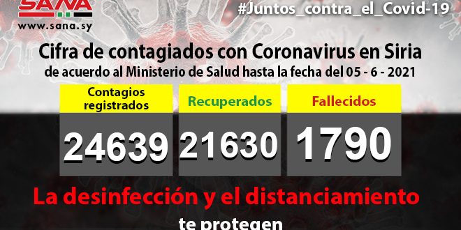 El Ministerio de Salud de Siria anunció en una nota de prensa, que se confirmaron en las últimas 24 horas, 20 nuevos casos de Covid-19 para un total de 24,639.