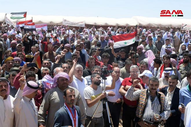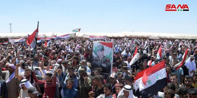 Notables y representantes de los clanes y tribus sirias en la provincia norteña de Alepo se dieron cita hoy en el corredor Al-Tayha (al norte de la cabecera provincial) para manifestar el apoyo al levantamiento popular de la población del municipio de Manbij contra las prácticas criminales de la milicia separatista Fuerzas Democráticas de Siria (FDS), apoyada por Estados Unidos.