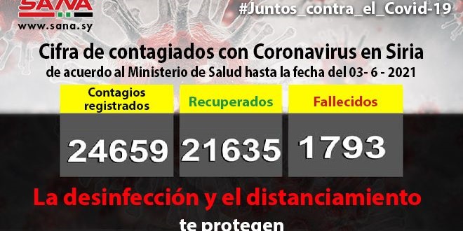El Ministerio de Salud de Siria anunció en una nota de prensa, que en las últimas 24 horas, se confirmaron 20 nuevos casos de Covid-19 para un total de 24,659.