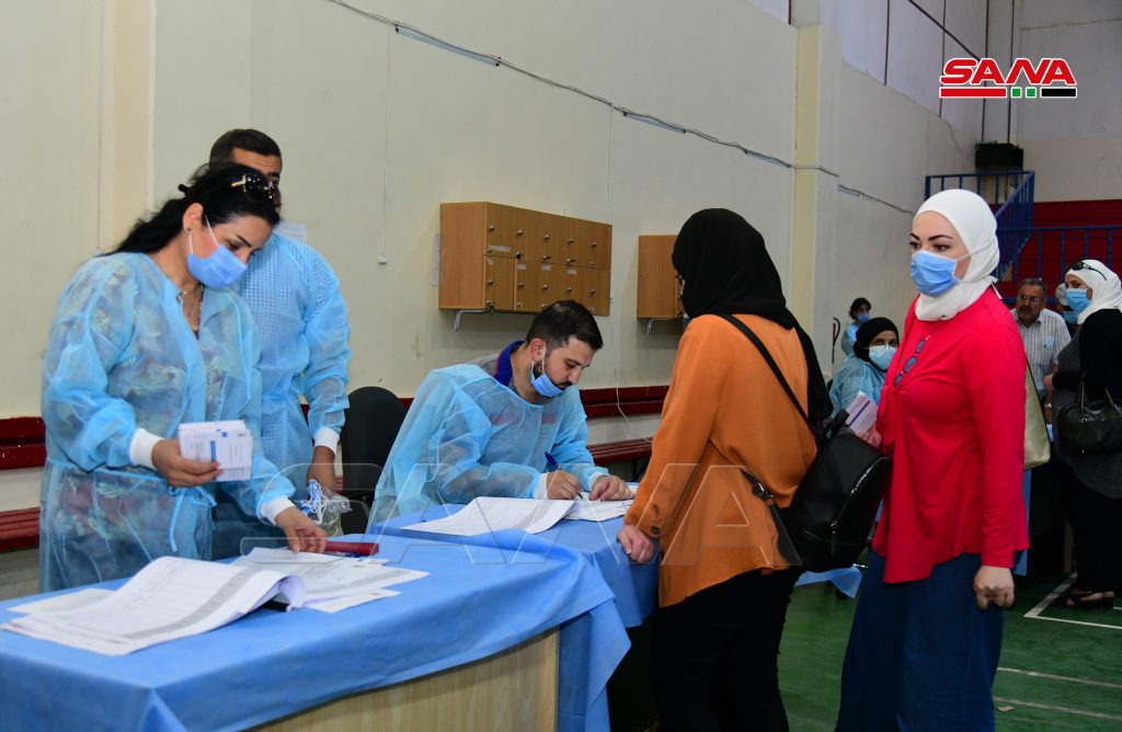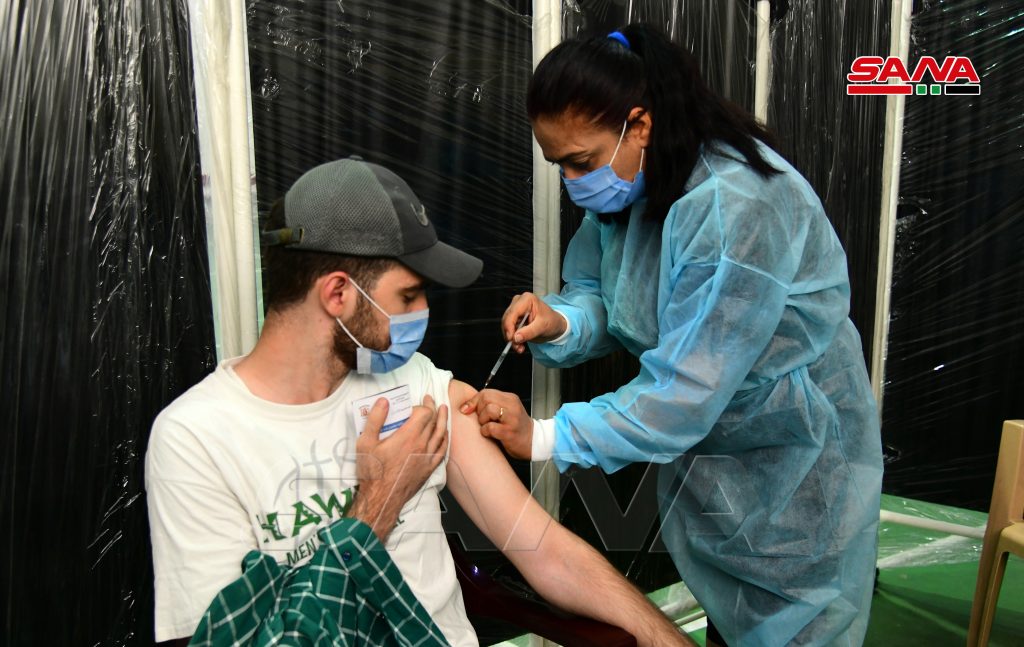 El Hospital de Emergencias instalado en el Complejo Deportivo de Al-Fayhaa en Damasco, Dr. Yasser Zahra recibe un promedio de 400 personas por día para colocarles la vacuna anti Covid-19.