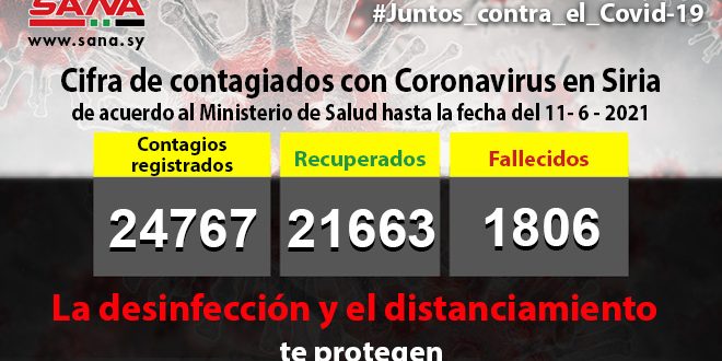 La nota agregó que la cifra total de infectados ascendió a 24,767, de los cuales 21.663 se curaron y 1.806 fallecieron.