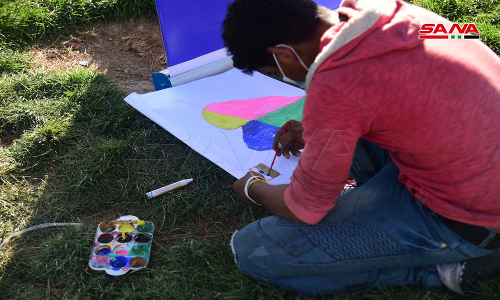 Las actividades tuvieron lugar en el Parque Al-Sobki en Damasco, donde 150 niños exhibieron sus dibujos que abordaron los peligros del trabajo infantil.