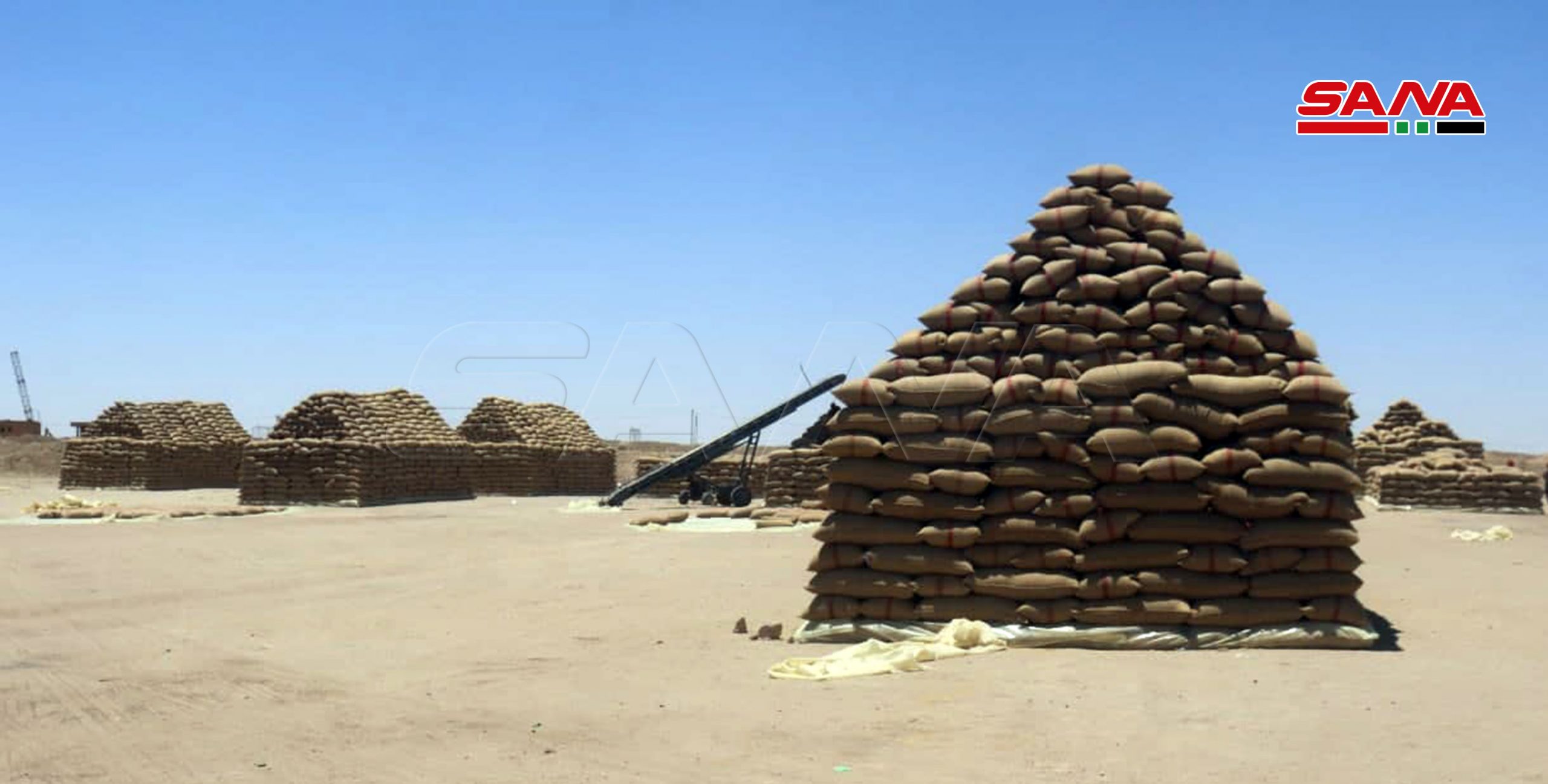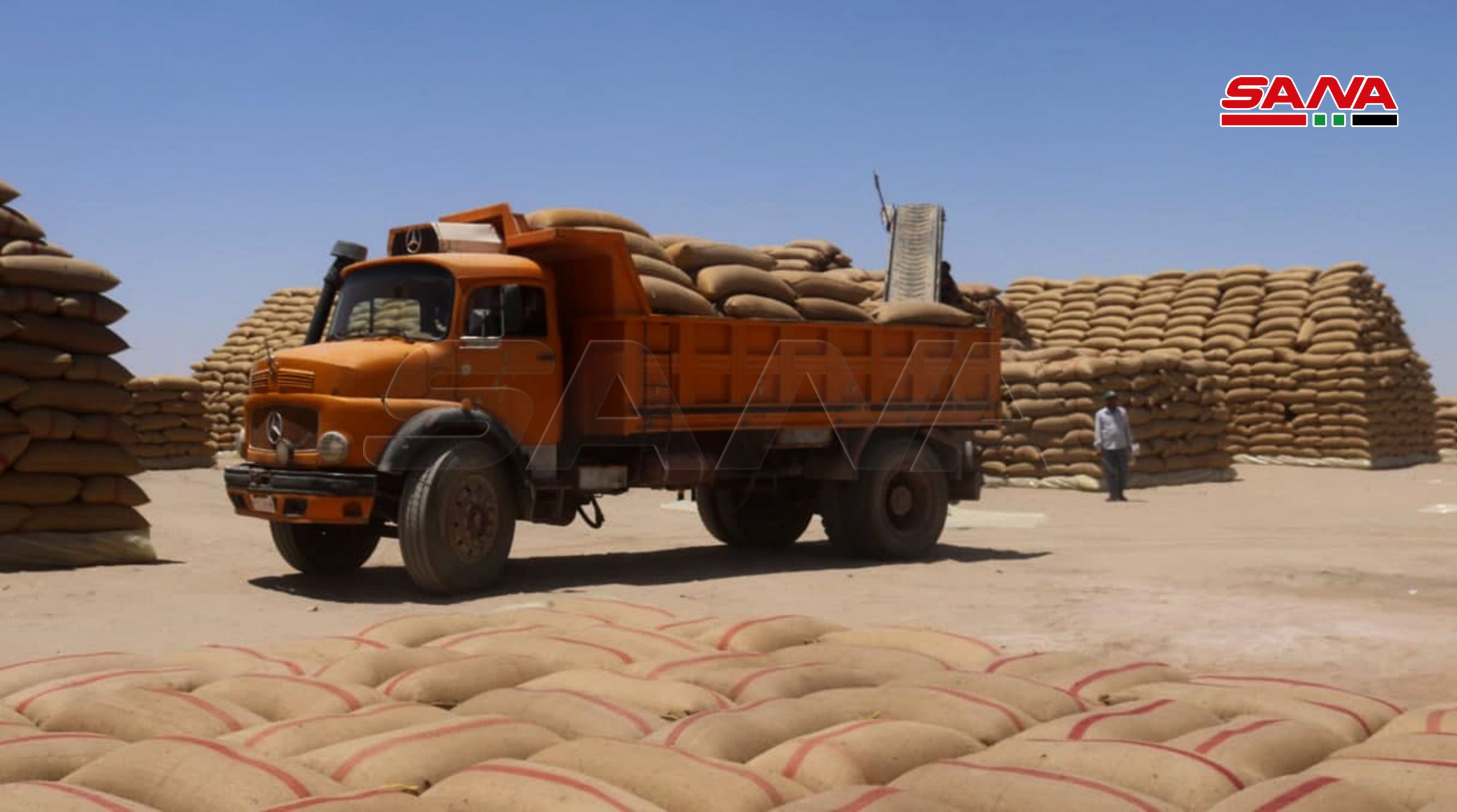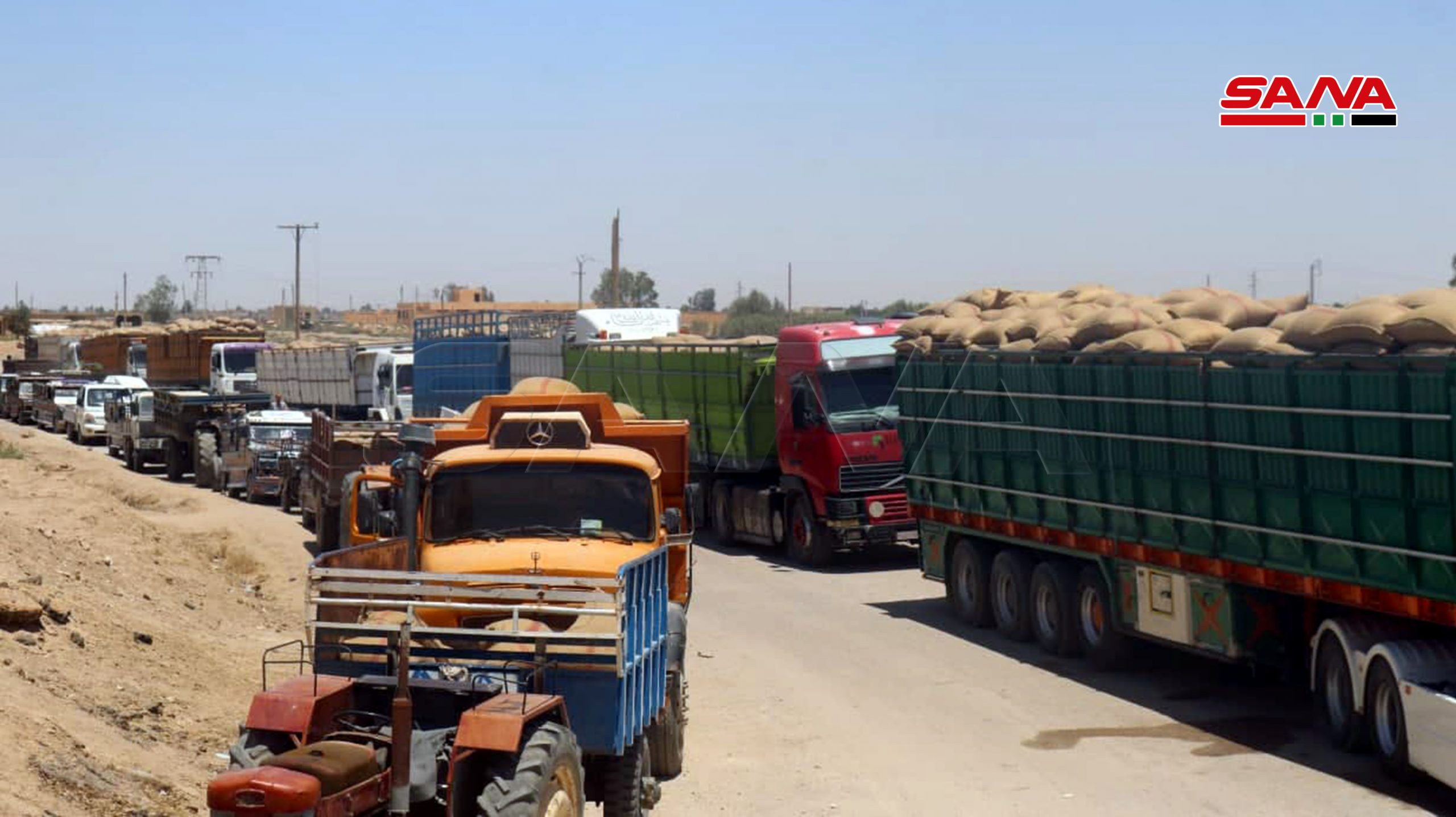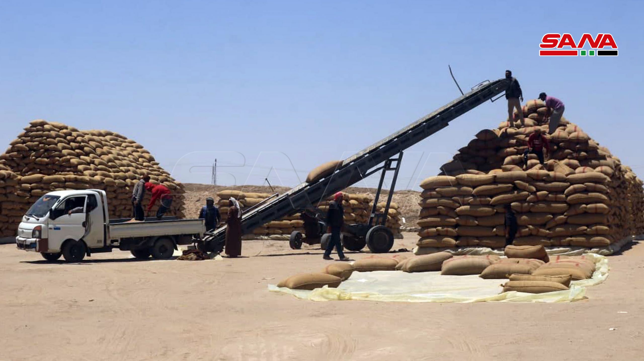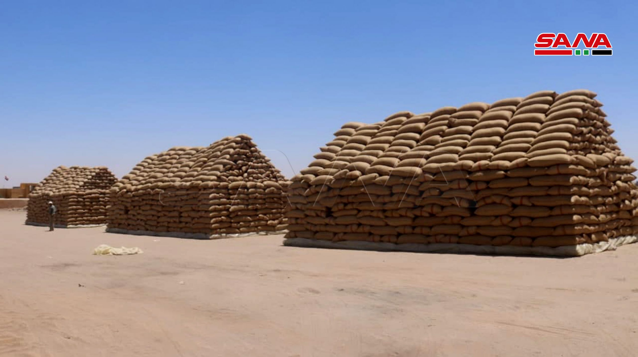 El Centro de Cereales Al-Mayadeen sigue recibiendo la cosecha de trigo de los agricultores en el campo oriental de la provincia de Deir Ezzor.