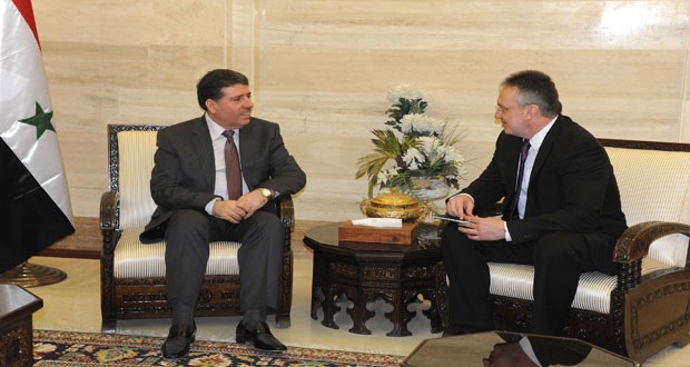 El Primer Ministro, Wael al-Halaqui, se reunió con el embajador ruso en Damasco, Alexander Kinshak, con quien debatió los medios de implementar los acuerdos firmados entre los dos países y firmar nuevos acuerdos que abarquen todos los sectores de energía eléctrica, agua potable, educación superior, transporte y petróleo.El primer ministro afirmó el interés del gobierno sirio en buscar nuevos horizontes de cooperación económica con los países amigos principalmente Rusia, para mitigar los efectos del injusto bloqueo contra el pueblo sirio, y asegurar los necesidades de vivir para el pueblo sirio, llamando a las empresas rusas para establecer proyectos de servicio, inversión, y contribuir a la reconstrucción de Siria.