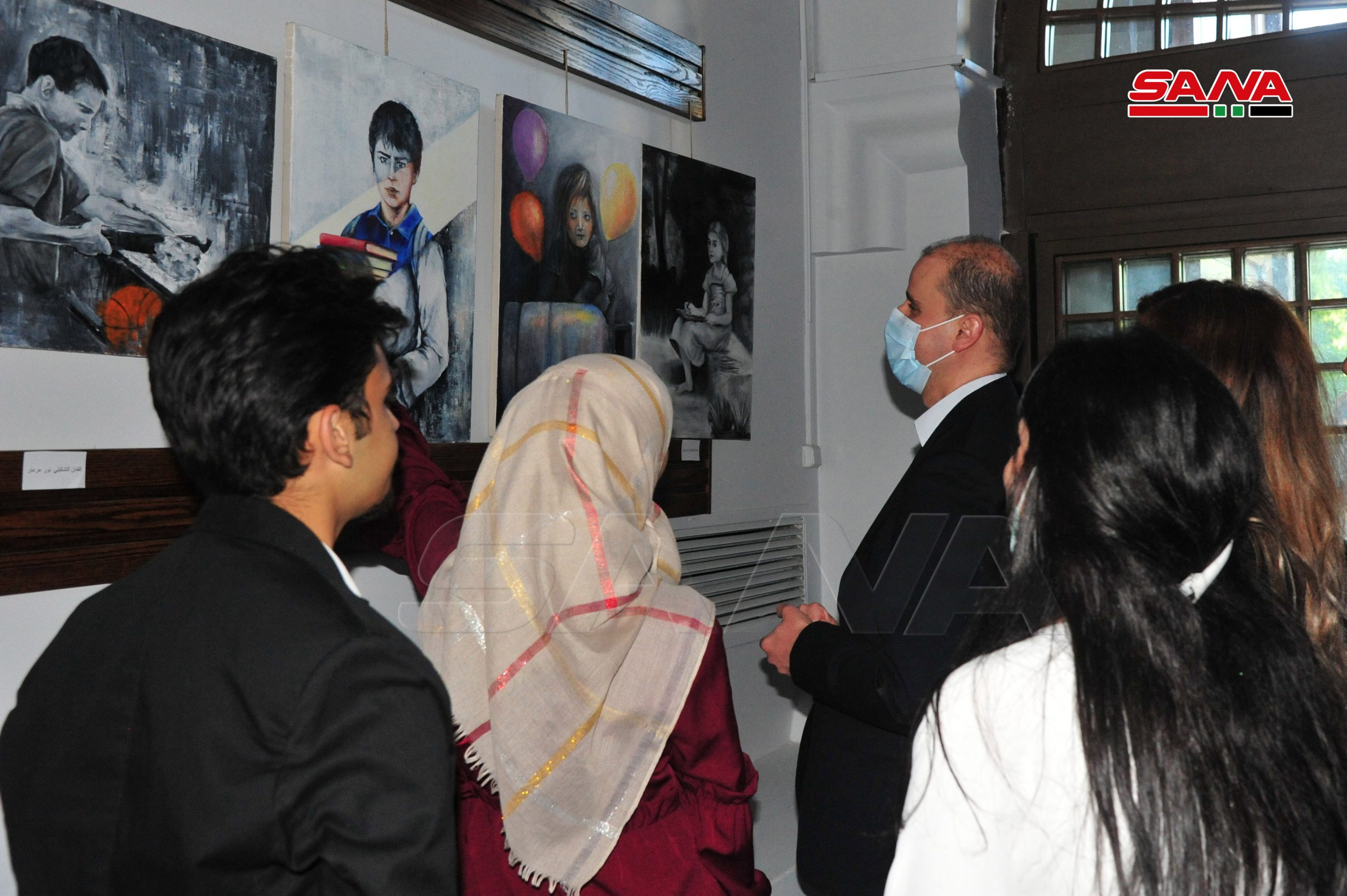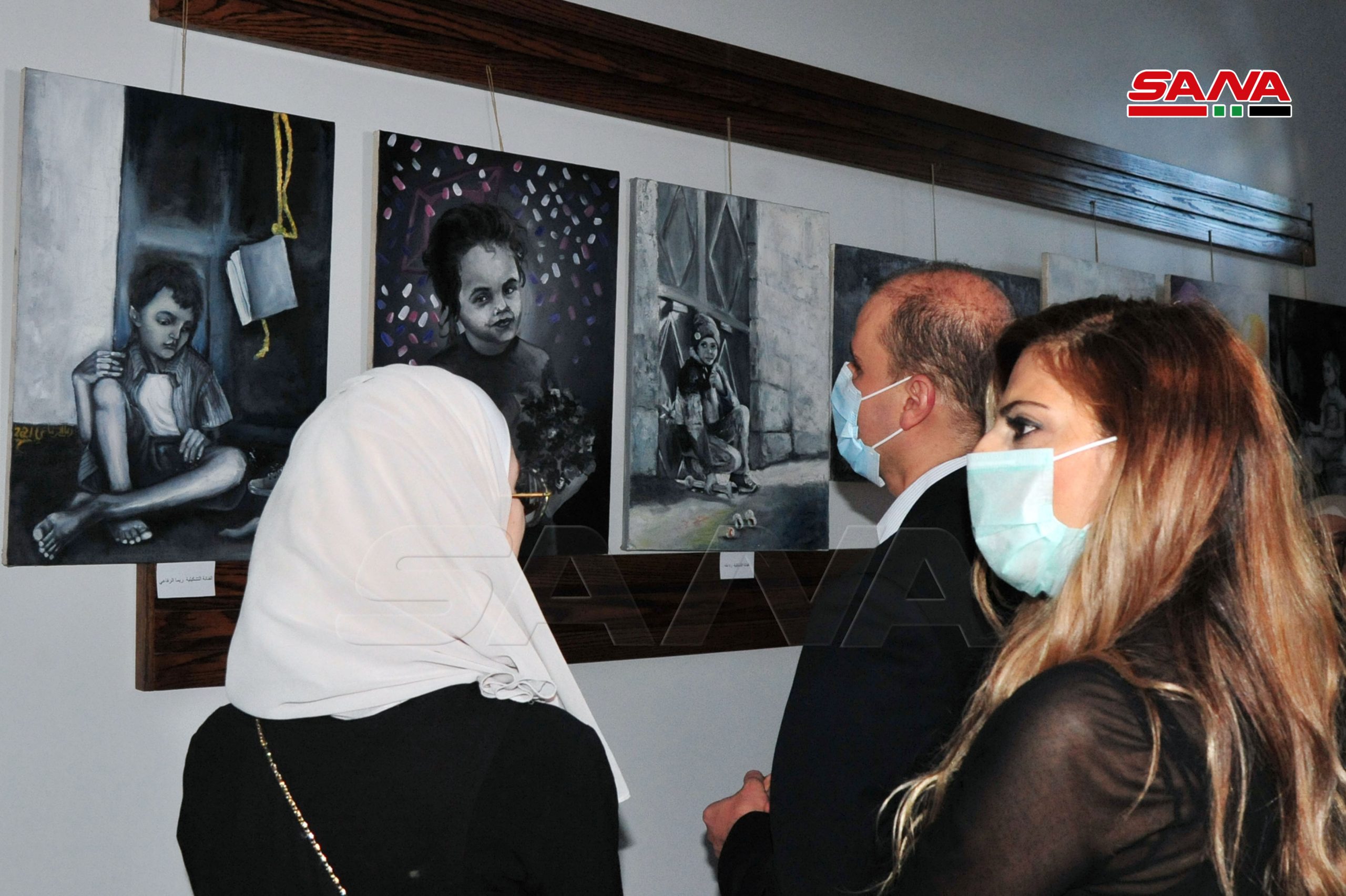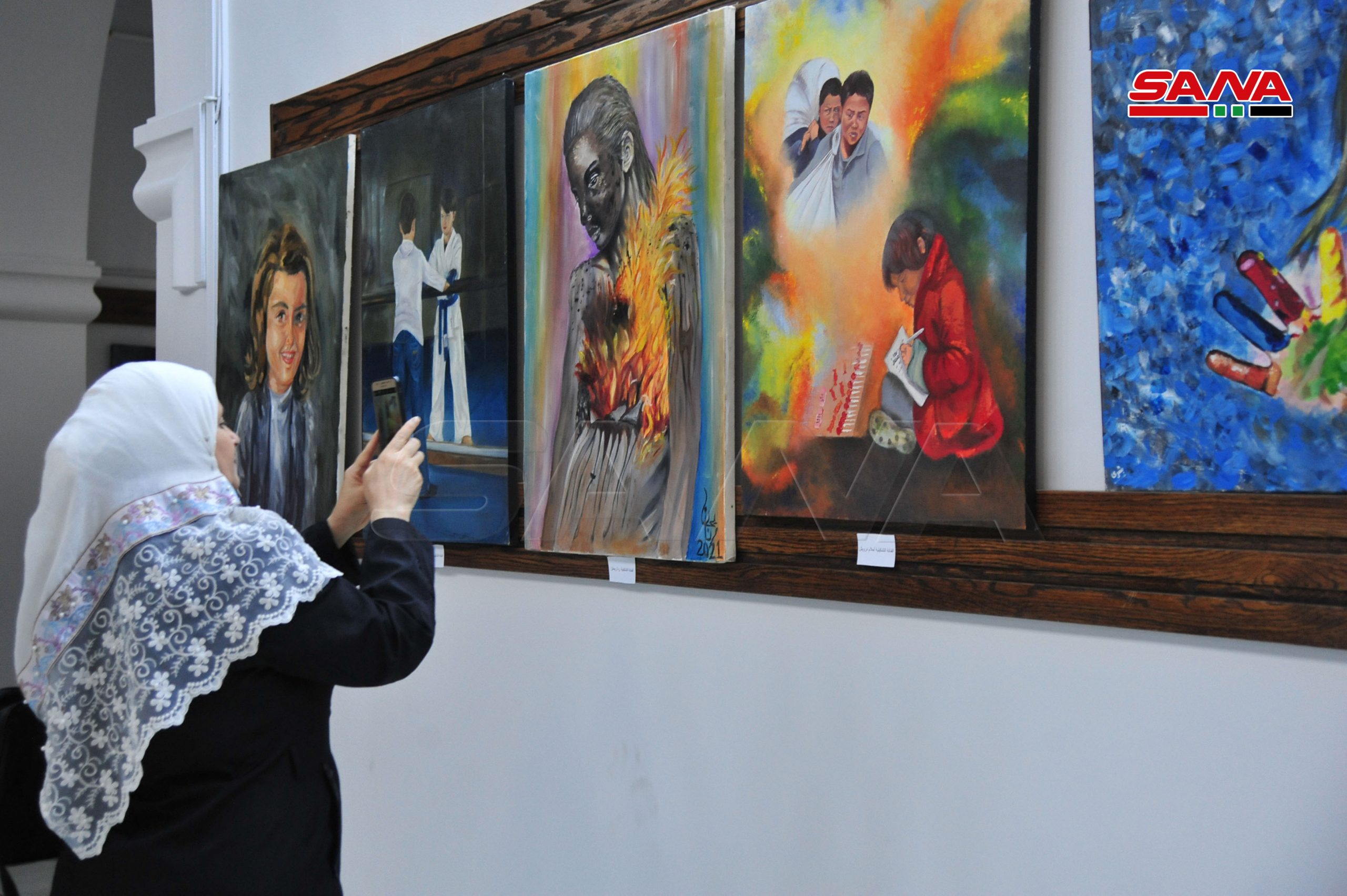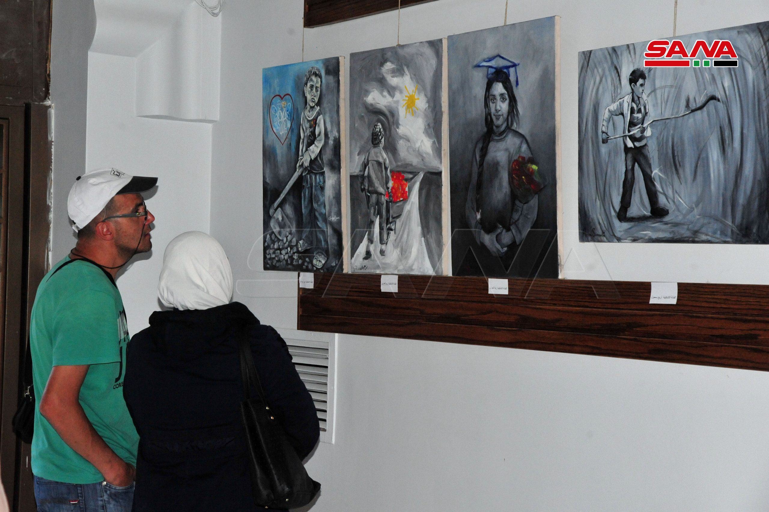 El artista plástico Adnan Qassem explicó a SANA que participó en la exposición con seis cuadros que expresan la situación de estos niños y sus dolores impuestos por la mala situación económica de sus familias y las condiciones de guerra que habían aumentado su sufrimiento.