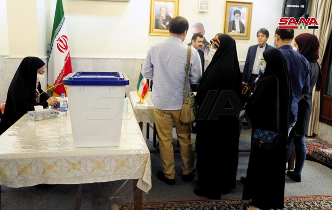En fotos, ciudadanos iraníes residentes en Siria votan en las elecciones presidenciales en la embajada de su país