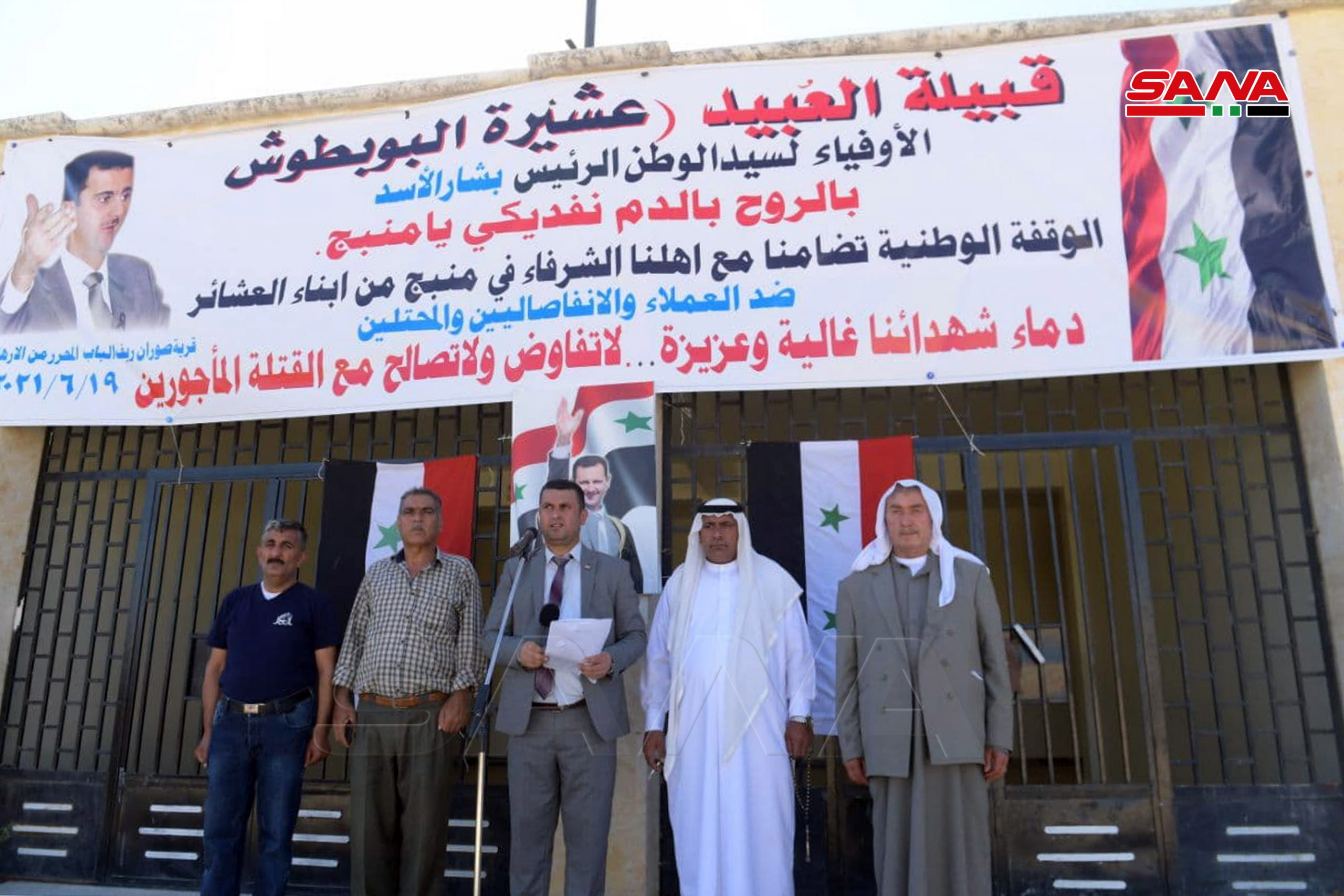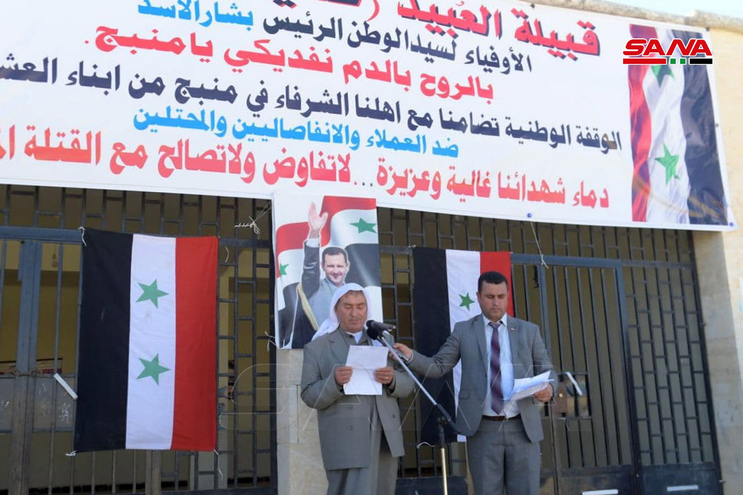 Exigieron la salida de las bandas de FDS y expulsar al ocupante y ratificaron la confianza en el Ejército Árabe Sirio y su capacidad de liberar cada pulgada del territorio sirio y lograr la victoria sobre los enemigos.
