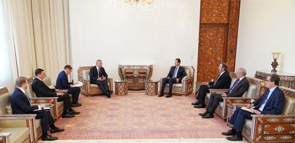 El presidente Bashar al-Assad, recibió este martes a Yury Borisov, viceprimer ministro de la Federación de Rusia y la delegación que le acompaña.