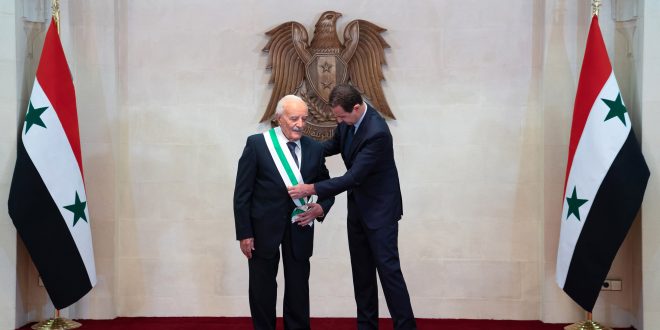 El presidente Bashar Al-Assad, otorgó la Medalla al Mérito Sirio de excelente grado al general Ali Aslan como reconocimiento a su carrera militar, su heroísmo en campos de guerra y sus continuos aportes a la patria durante siete décadas.