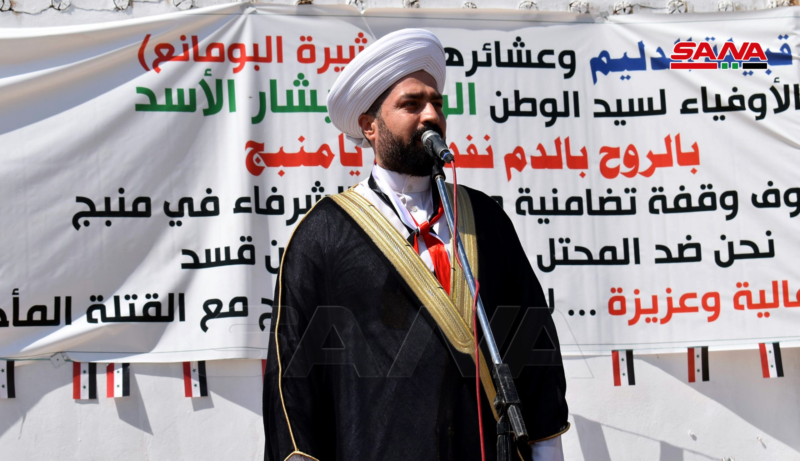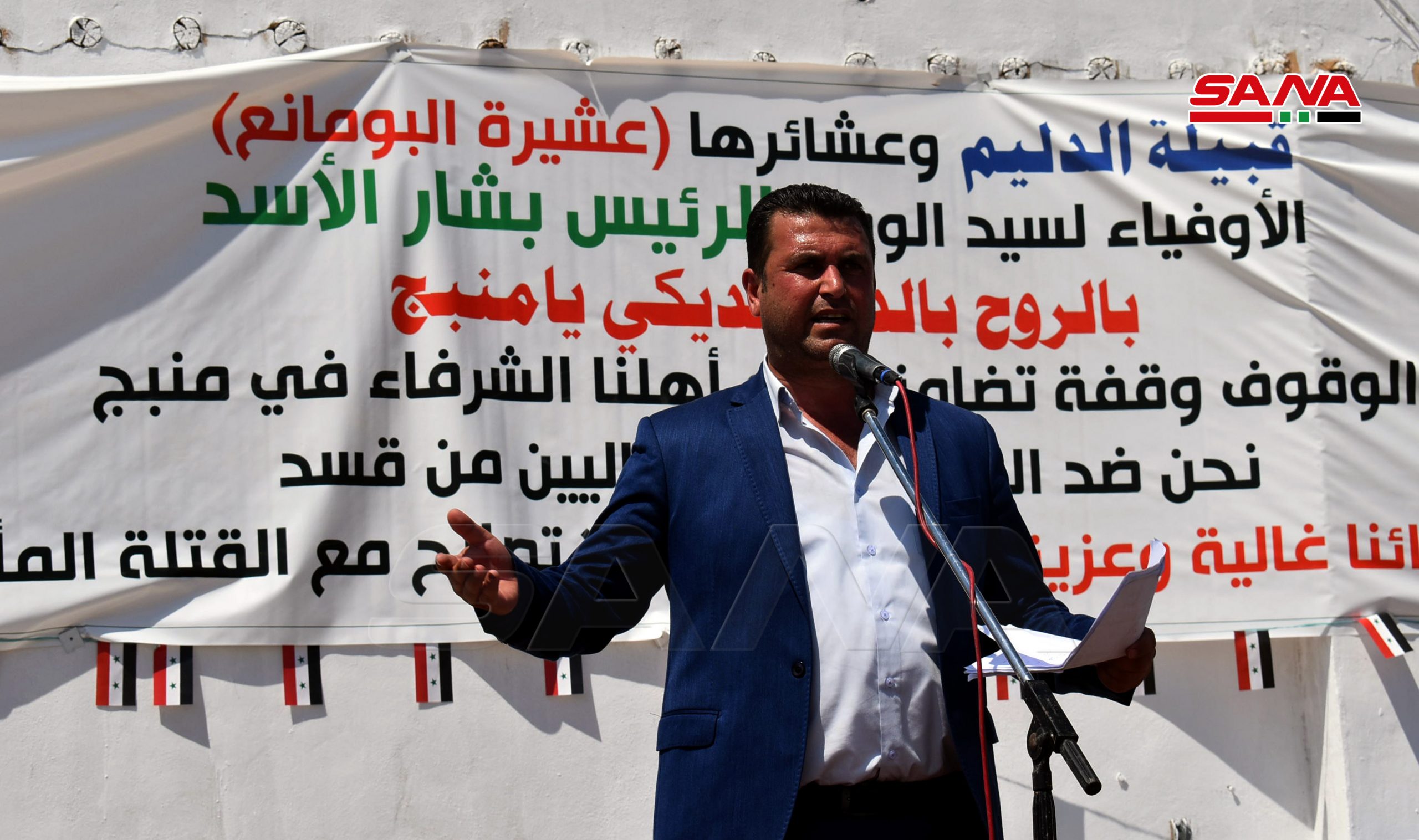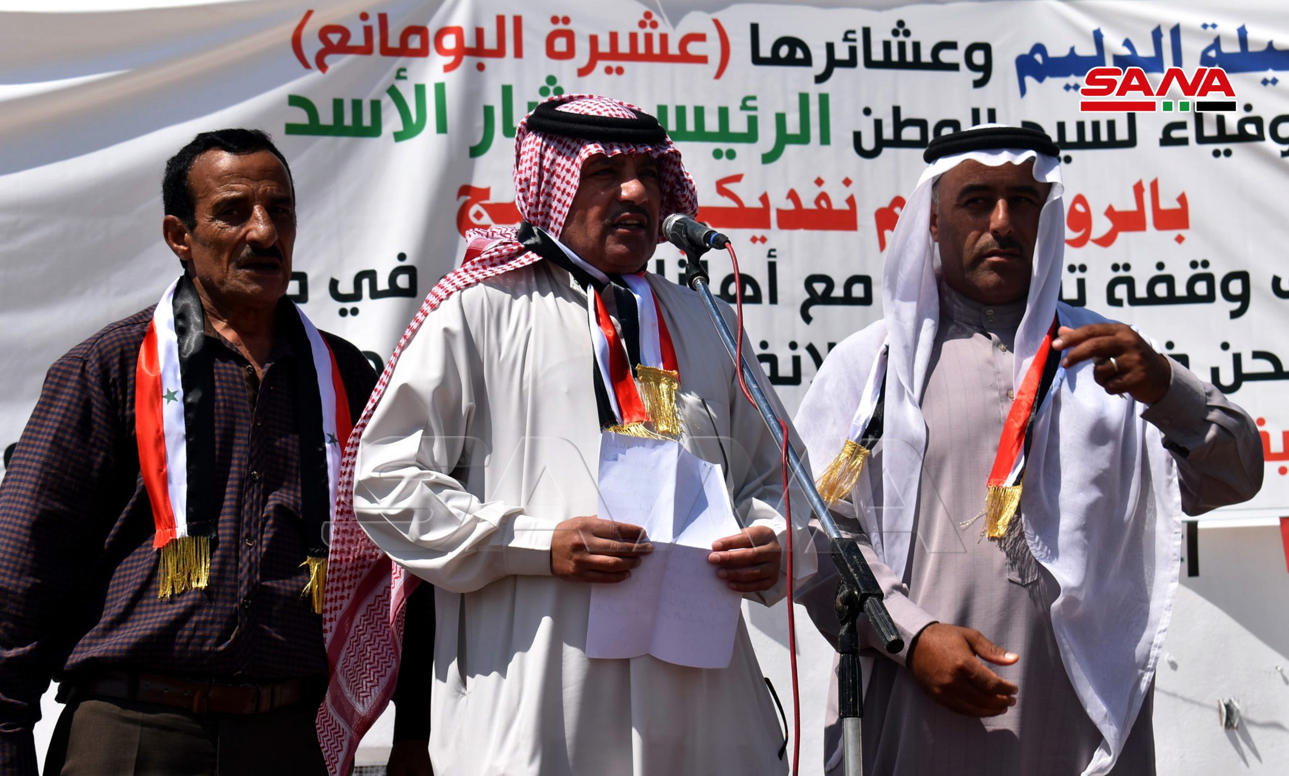 Los pobladores y clanes de la localidad de Wadha Al-Hayet en el este de la provincia de Alepo protagonizaron un mitin de solidaridad y apoyo a los compatriotas en la ciudad de Manbij quienes resisten ante las prácticas criminales de la milicia separatista proestadounidense (FDS).