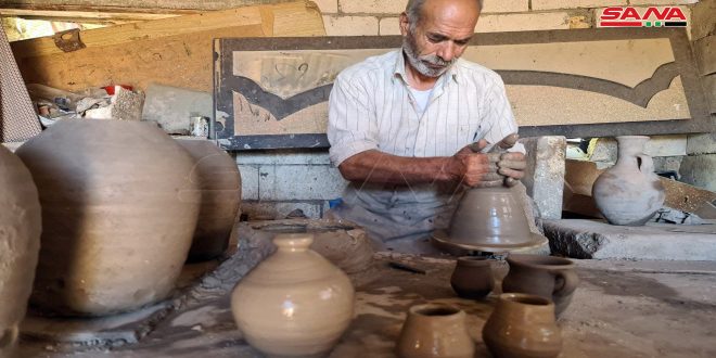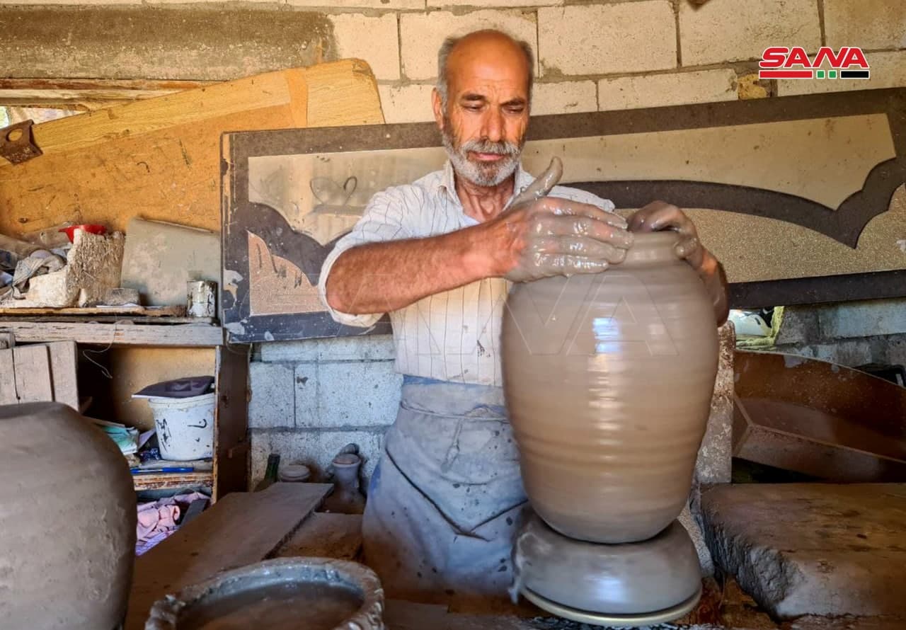 Su taller se ubica en la carretera principal entre las ciudades de Banias y Jableh, Hammadi, apodado el barrero (Al-Fakhouri en árabe), dijo en una entrevista con SANA que elabora cualquier pieza de cerámica de acuerdo a la solicitud del cliente.