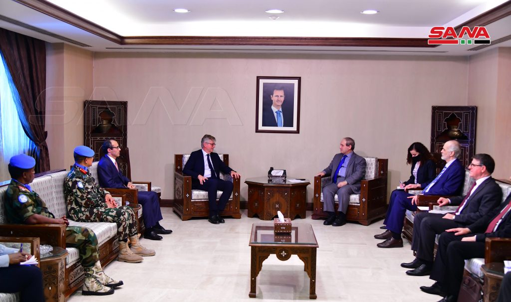 El Ministro de Exteriores y Expatriados, Faisal al-Mekdad, recibió a Jean-Pierre Lacroix, Secretario General Adjunto de Operaciones de Paz de las Naciones Unidas, y Mohammed Khaled Khiari, Secretario General adjunto de la ONU para el Medio Oriente, Asia y el Pacífico.