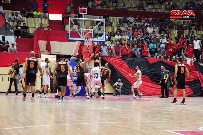 06/07/2021 Damasco, SANA El equipo Al-Wahda de baloncesto venció por un 3 punto a su rival Al-Jaish este martes, en un partido jugado en la ciudad de Damasco. Con un apretado marcador de 75 a 72 Al-Wahda se clasifica así para semifinales. mm 2021-07-06 mohamed