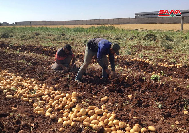 07/07/2021 Homs, SANA La localidad de Rastan en el norte de Homs, liberada en 2018 de las agrupaciones terroristas, recupera gradualmente su sector agrícola. A continuación imágenes de la recogida de papas en dicha localidad fm/ws 2021-07-07 lluvia