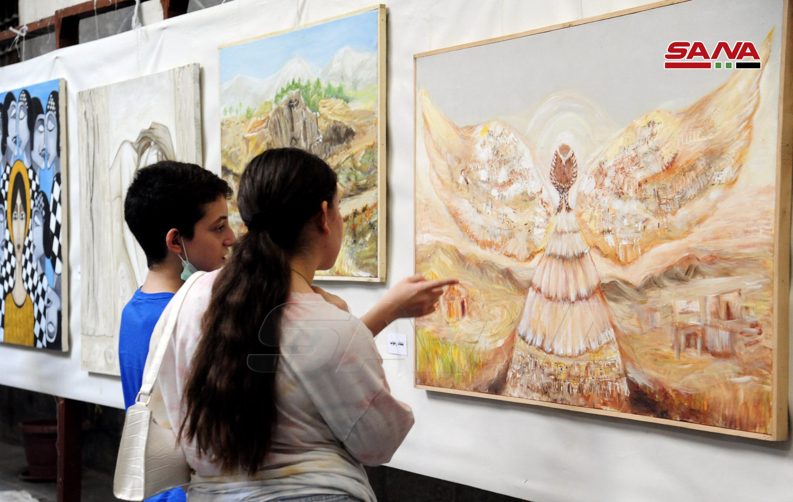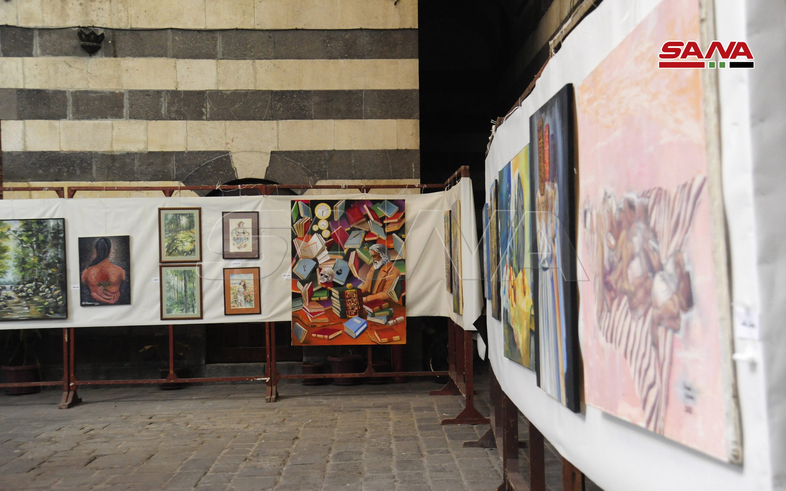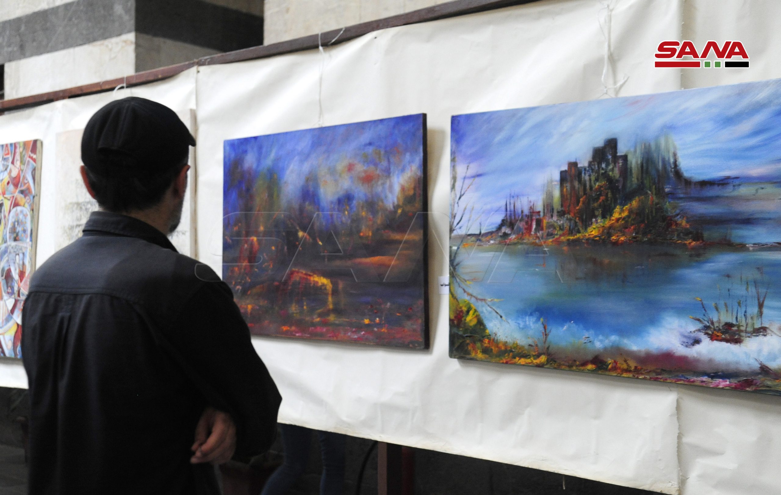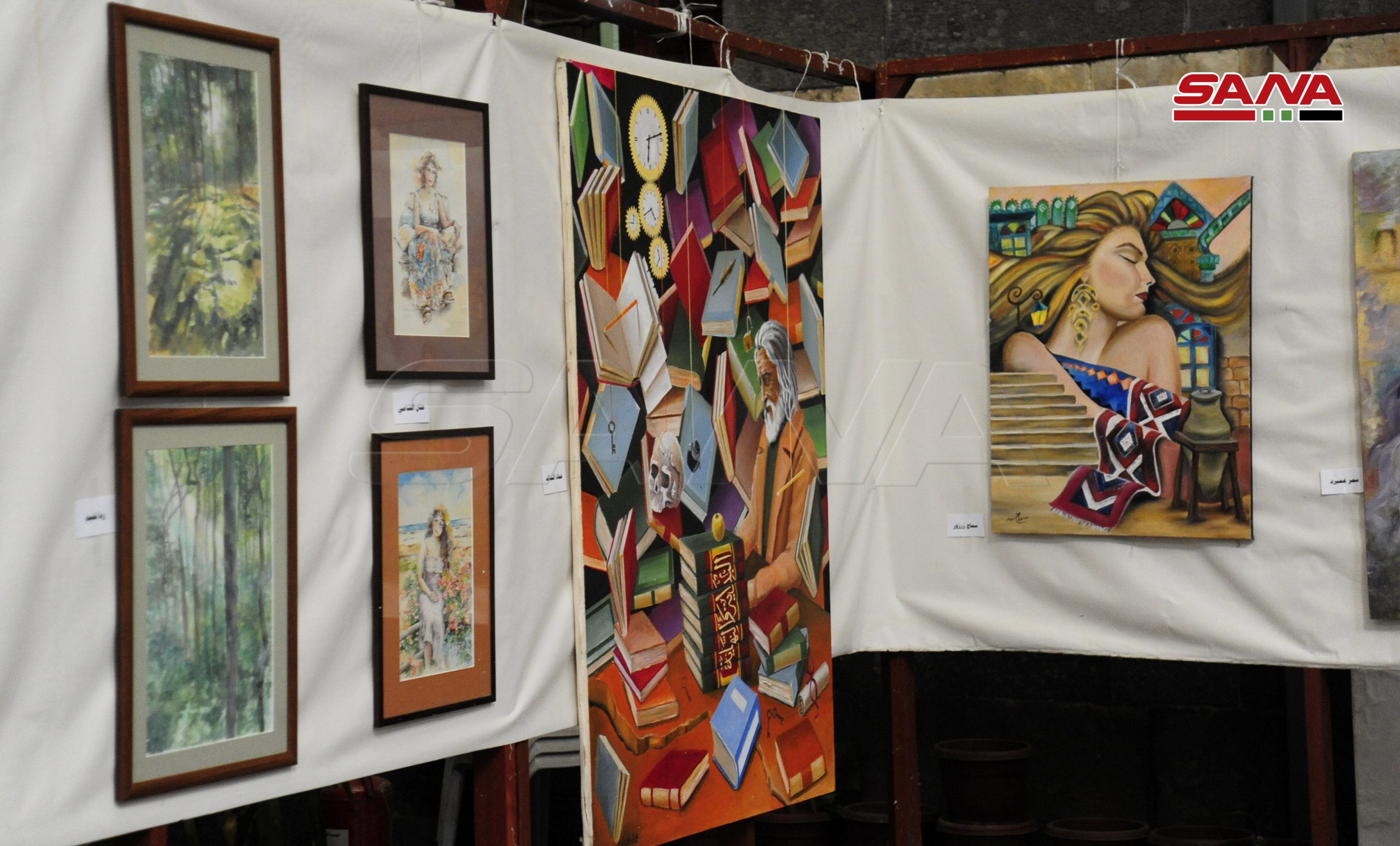 Las pinturas y esculturas exhibidas tratan diversos temas. Al respecto, la artista y arquitecta Maysa Mohamed, explicó a SANA que quiso reflejar en su cuadro los valores intelectuales, artísticos y culturales de los tiempos del pasado que fueron destruidos durante los años de la guerra.