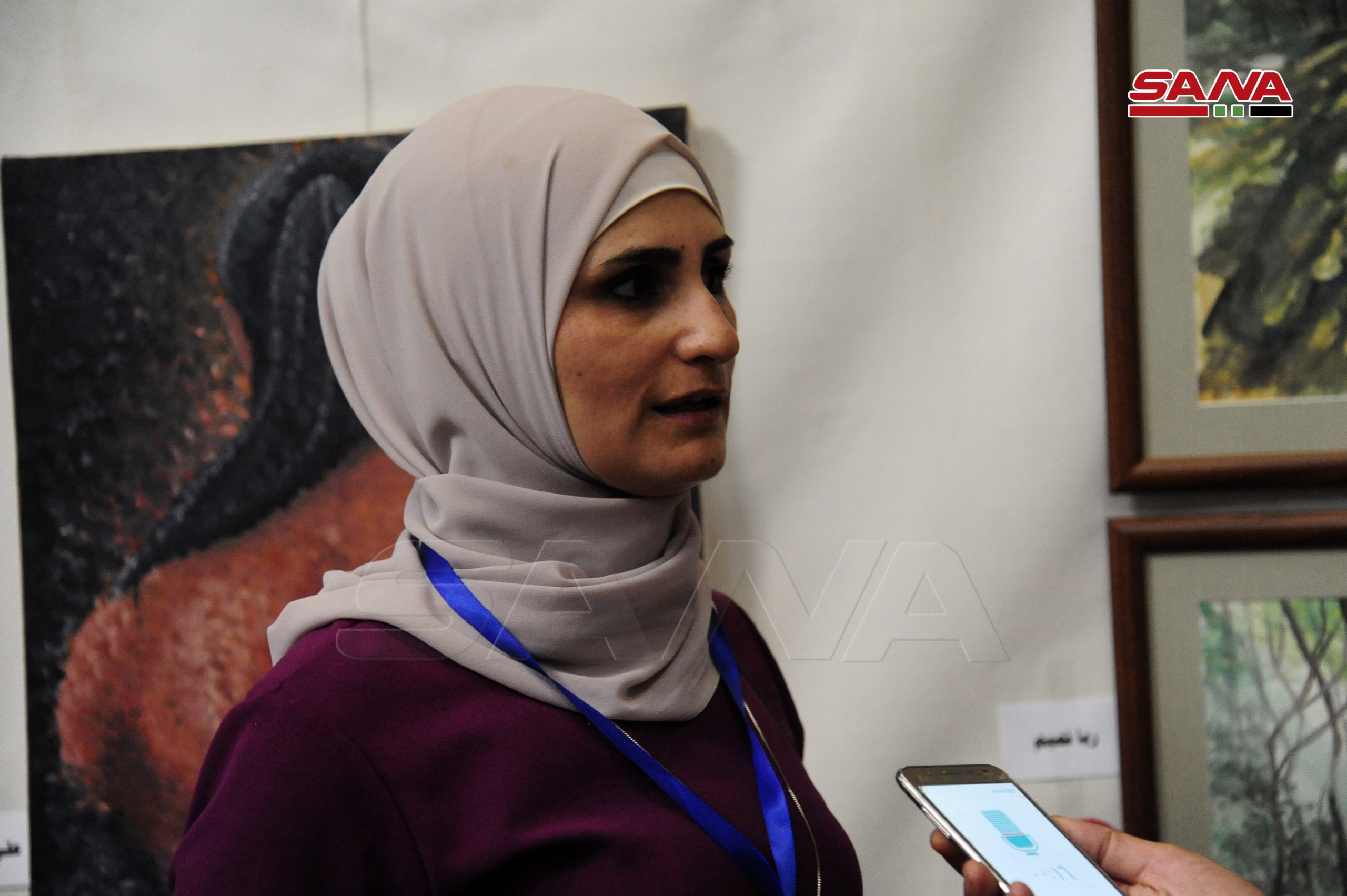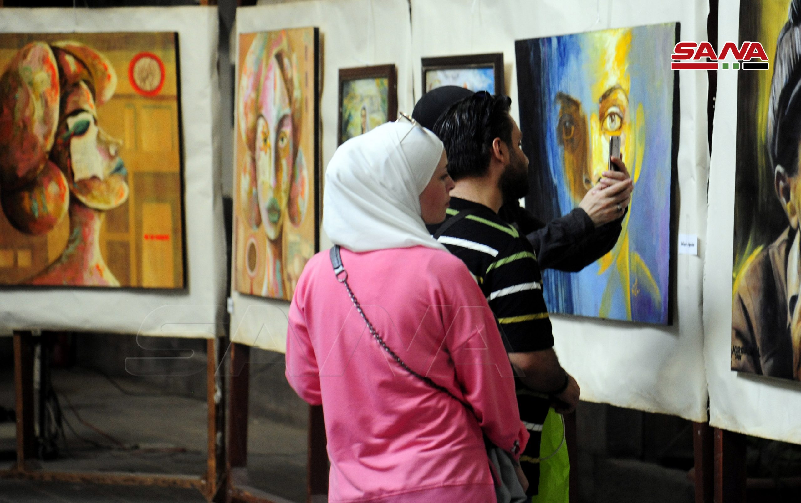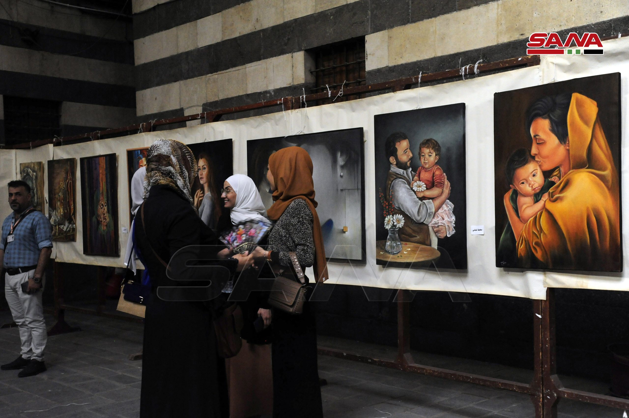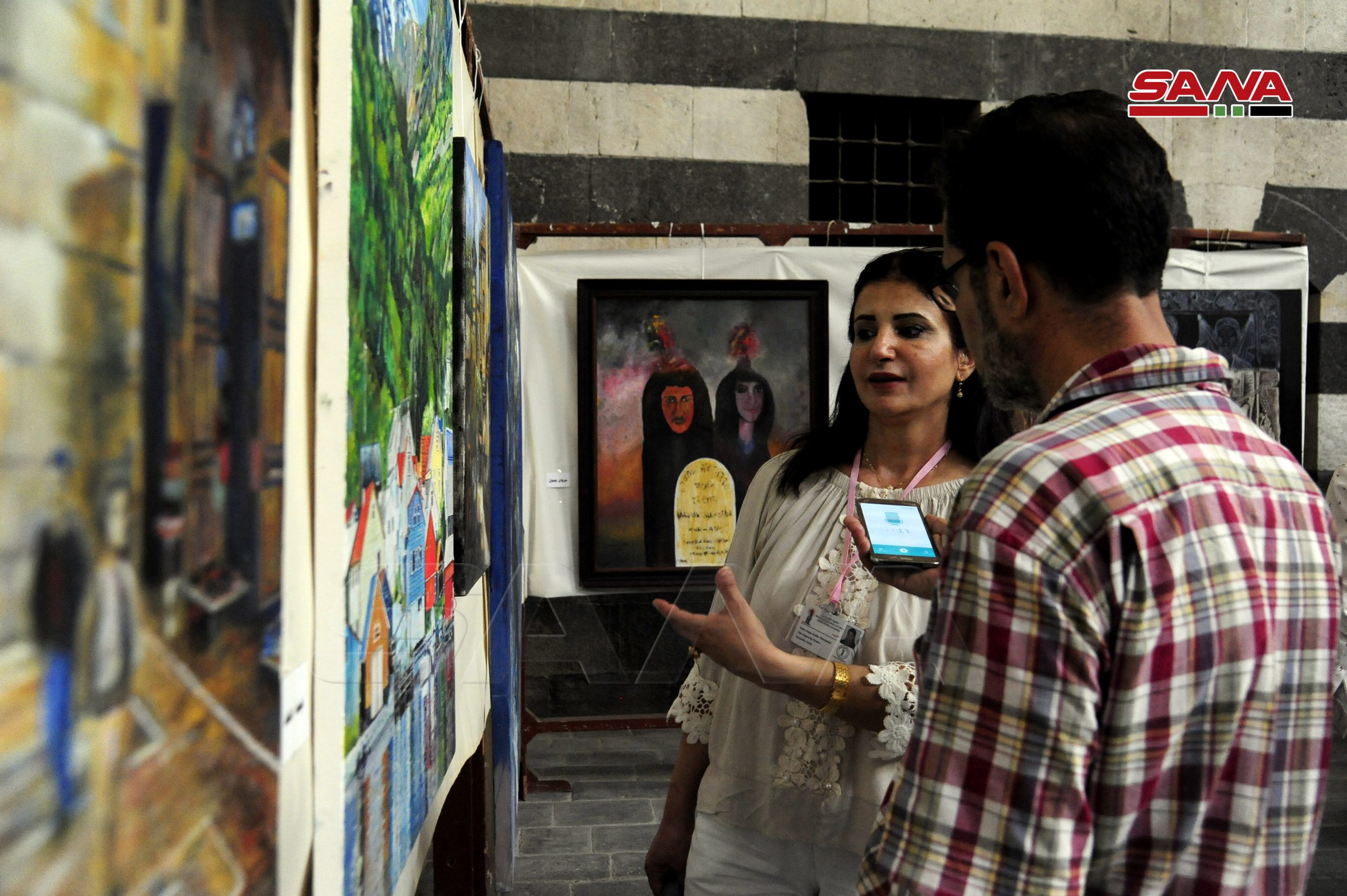 Las pinturas y esculturas exhibidas tratan diversos temas. Al respecto, la artista y arquitecta Maysa Mohamed, explicó a SANA que quiso reflejar en su cuadro los valores intelectuales, artísticos y culturales de los tiempos del pasado que fueron destruidos durante los años de la guerra.