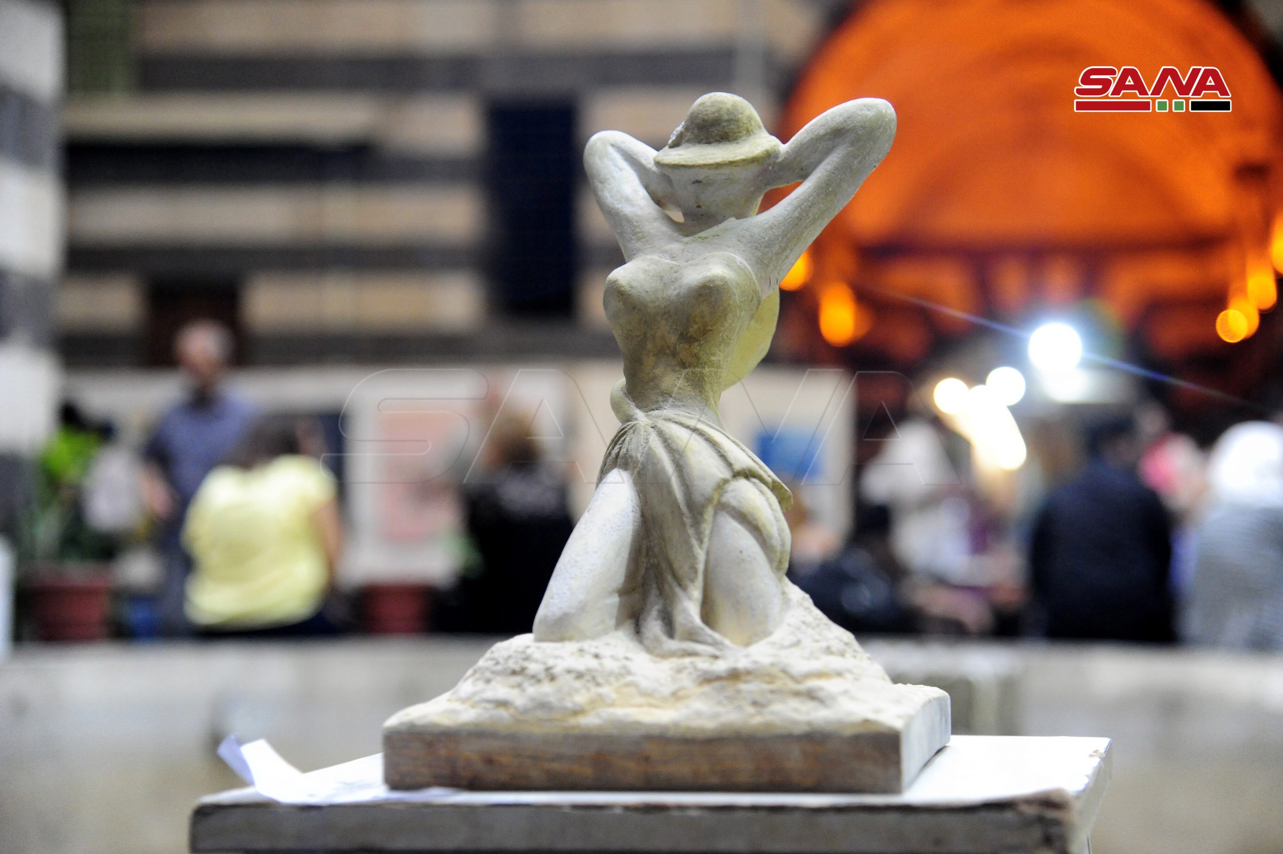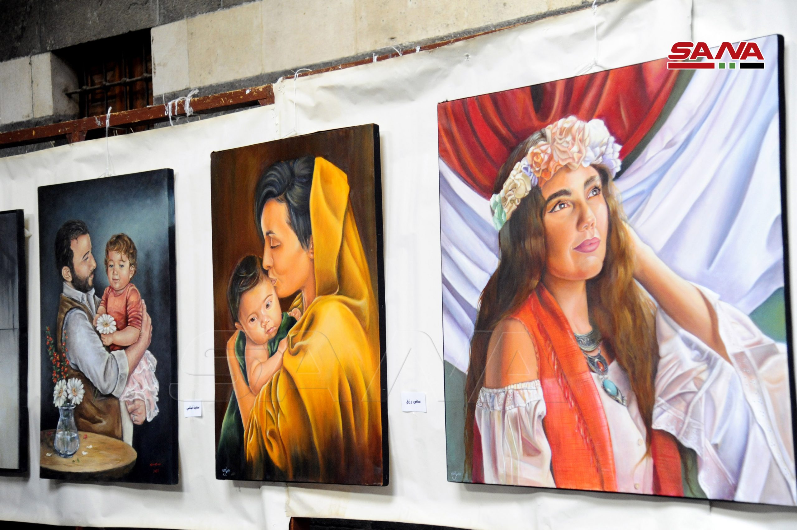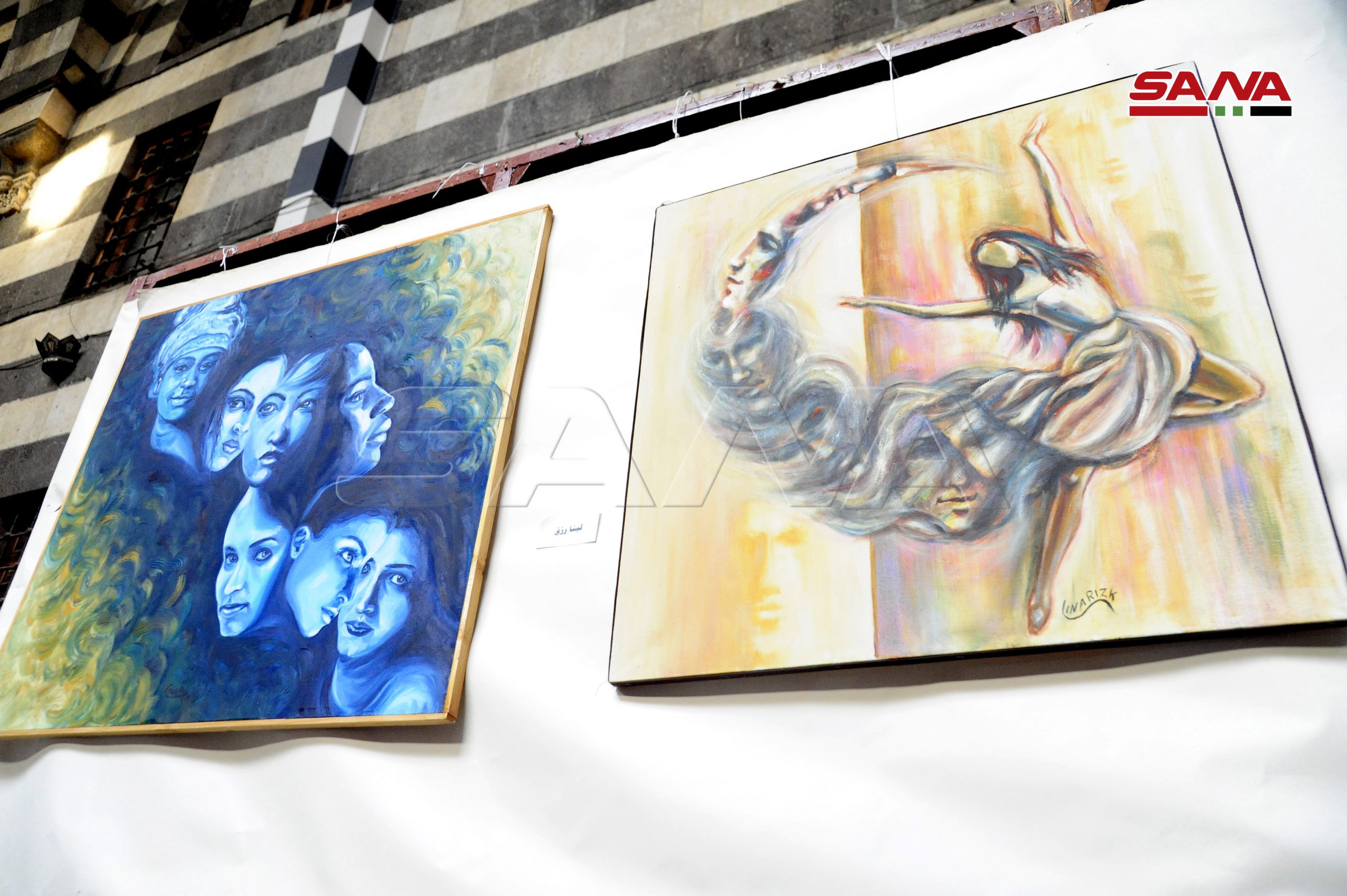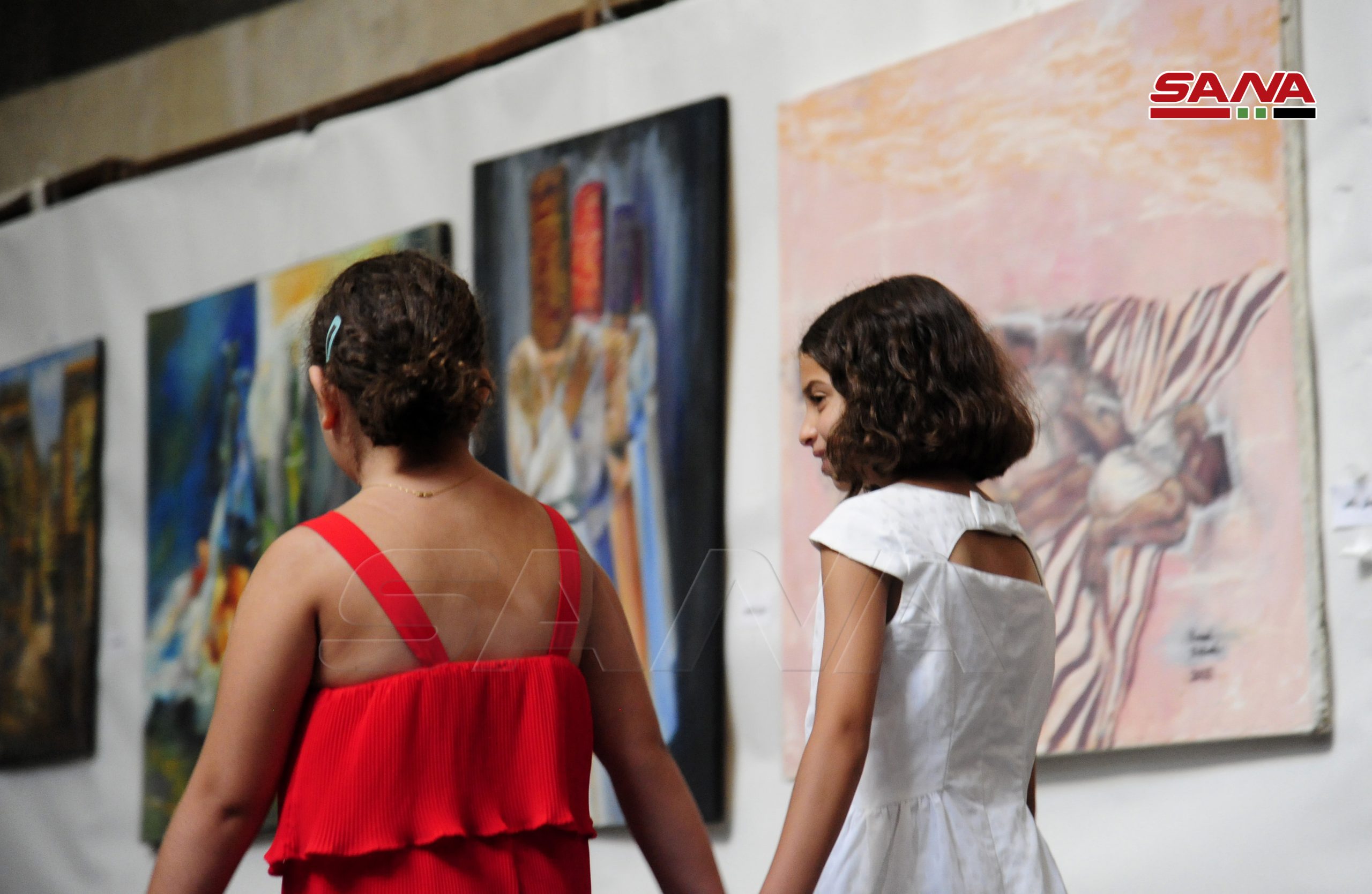 Las pinturas y esculturas exhibidas tratan diversos temas. Al respecto, la artista y arquitecta Maysa Mohamed, explicó a SANA que quiso reflejar en su cuadro los valores intelectuales, artísticos y culturales de los tiempos del pasado que fueron destruidos durante los años de la guerra.