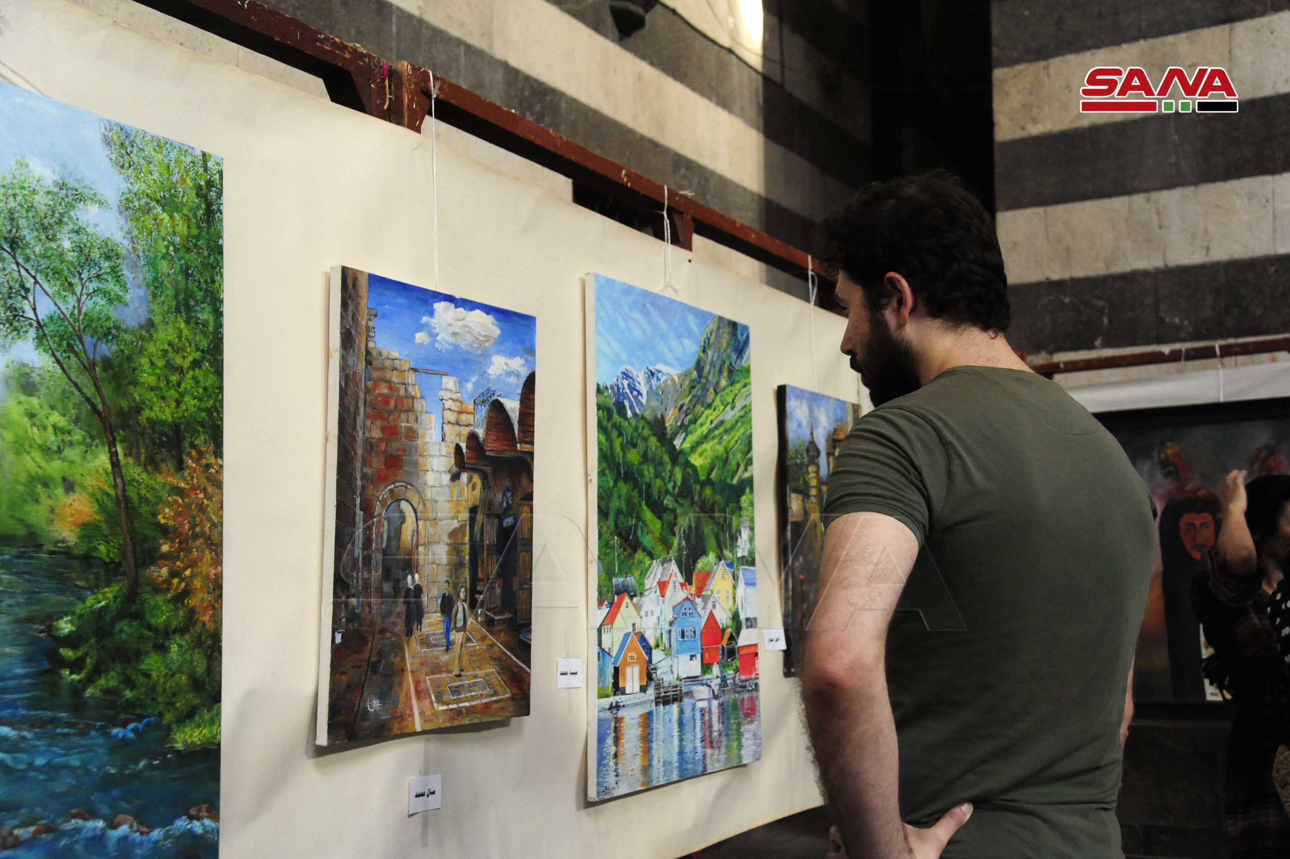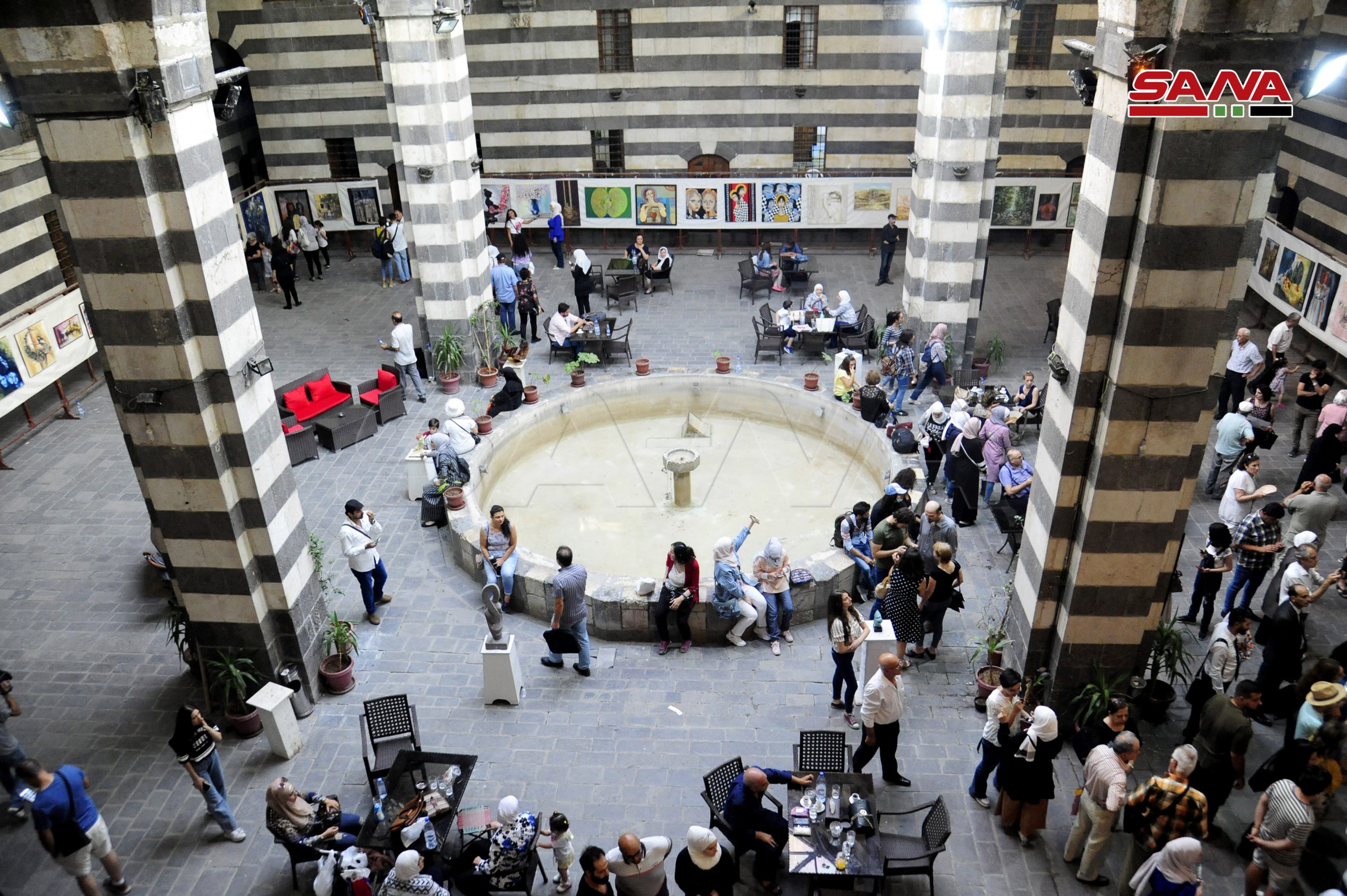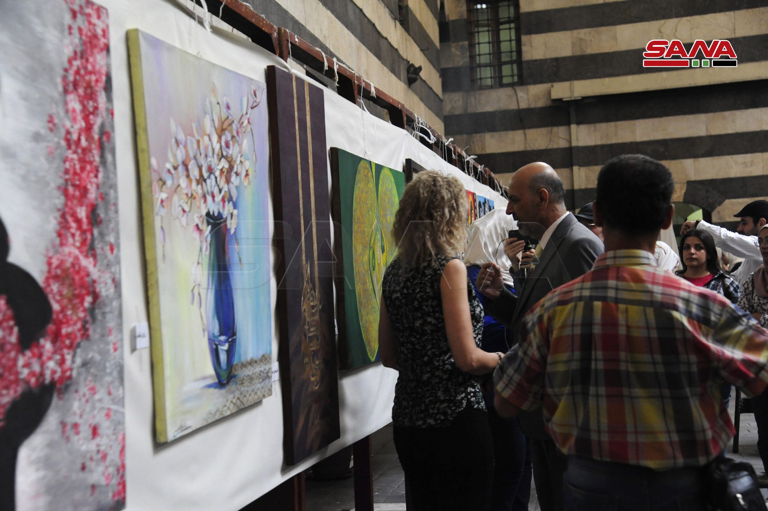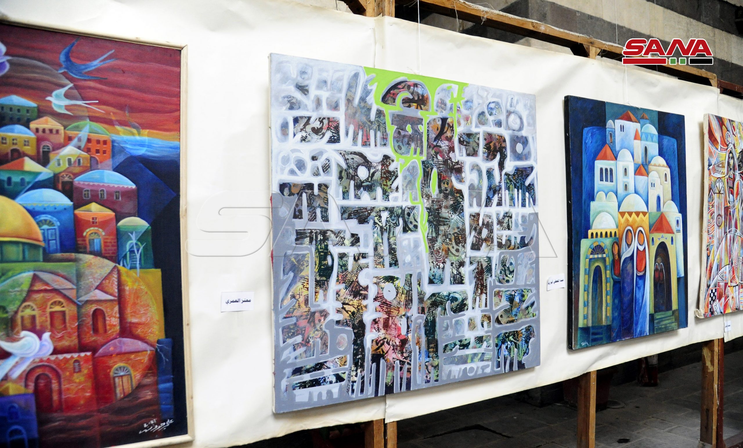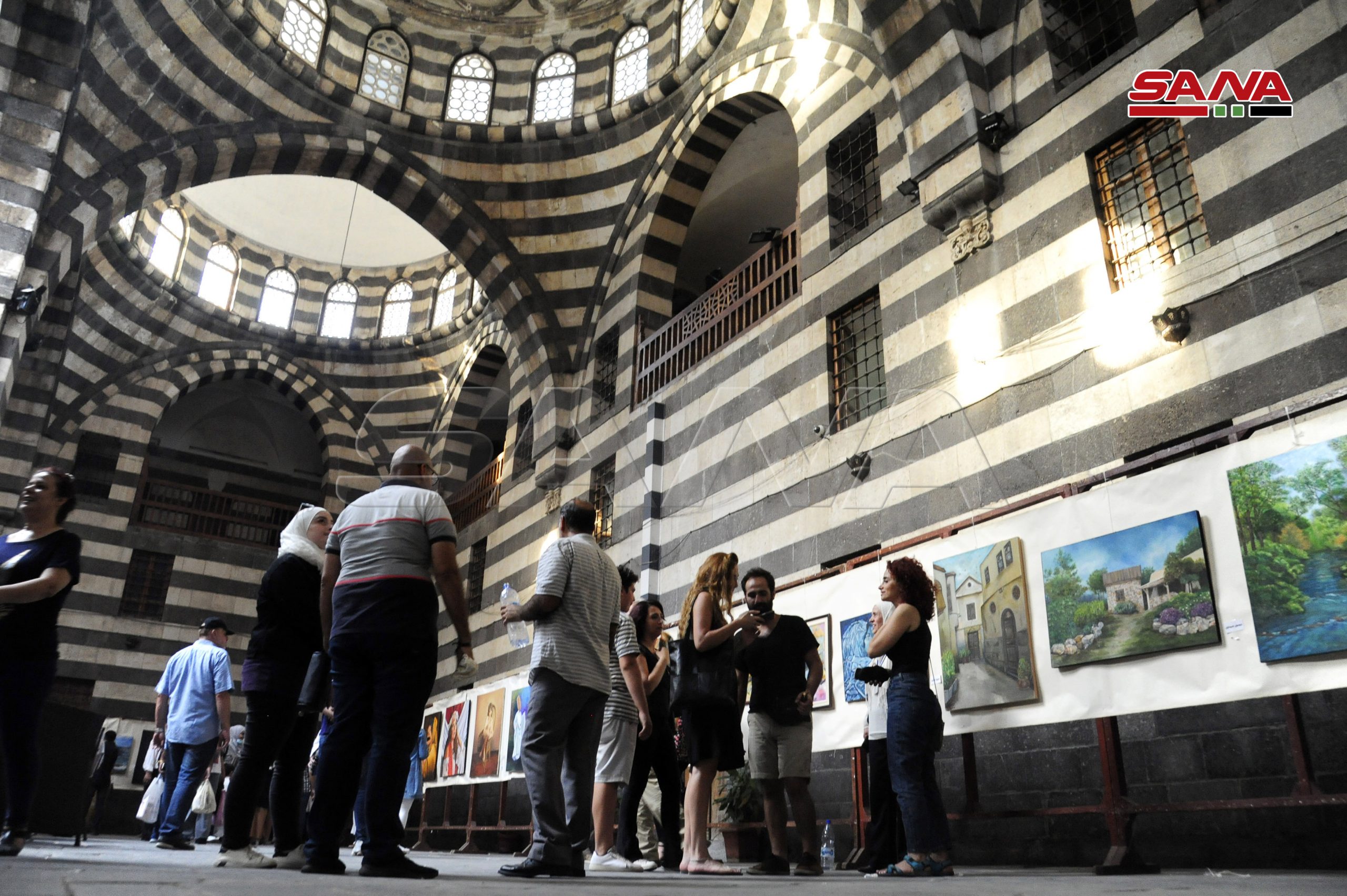 Más de 85 artistas plásticos de diferentes edades e instituciones de arte se dieron cita en la séptima exposición de arte de la Asociación “Velas por la Paz” que se organizó en el histórico caravasar de Khan Asaad Basha en el casco antiguo de Damasco.