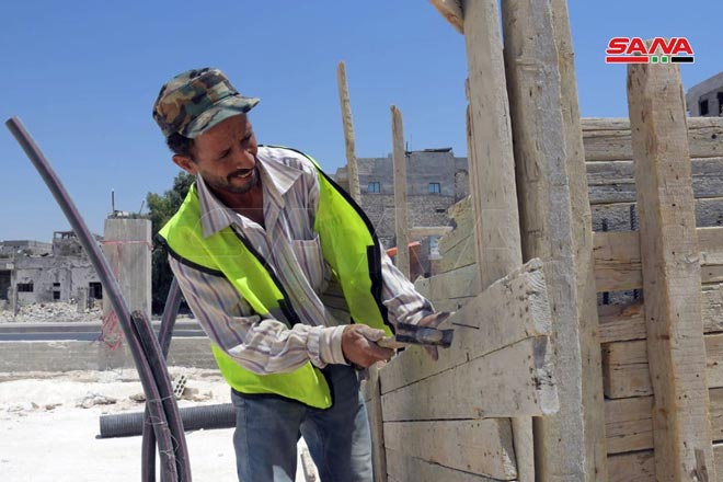 Siguen en marcha las obras de restauración y rehabilitación del Hospital de Niños en el barrio de Kadi Askar en Alepo que sufrió daños a consecuencia del terrorismo.