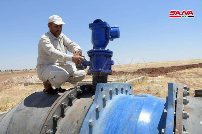 El proyecto de irrigación de las llanuras del sur de Alepo es uno de los proyectos vitales implementados por la Empresa de Recuperación de Tierras, y tiene como objetivo regar 65.000 hectáreas de tierras agrícolas mediante la rehabilitación del sistema de riego que sufrió daños a manos de grupos terroristas.
