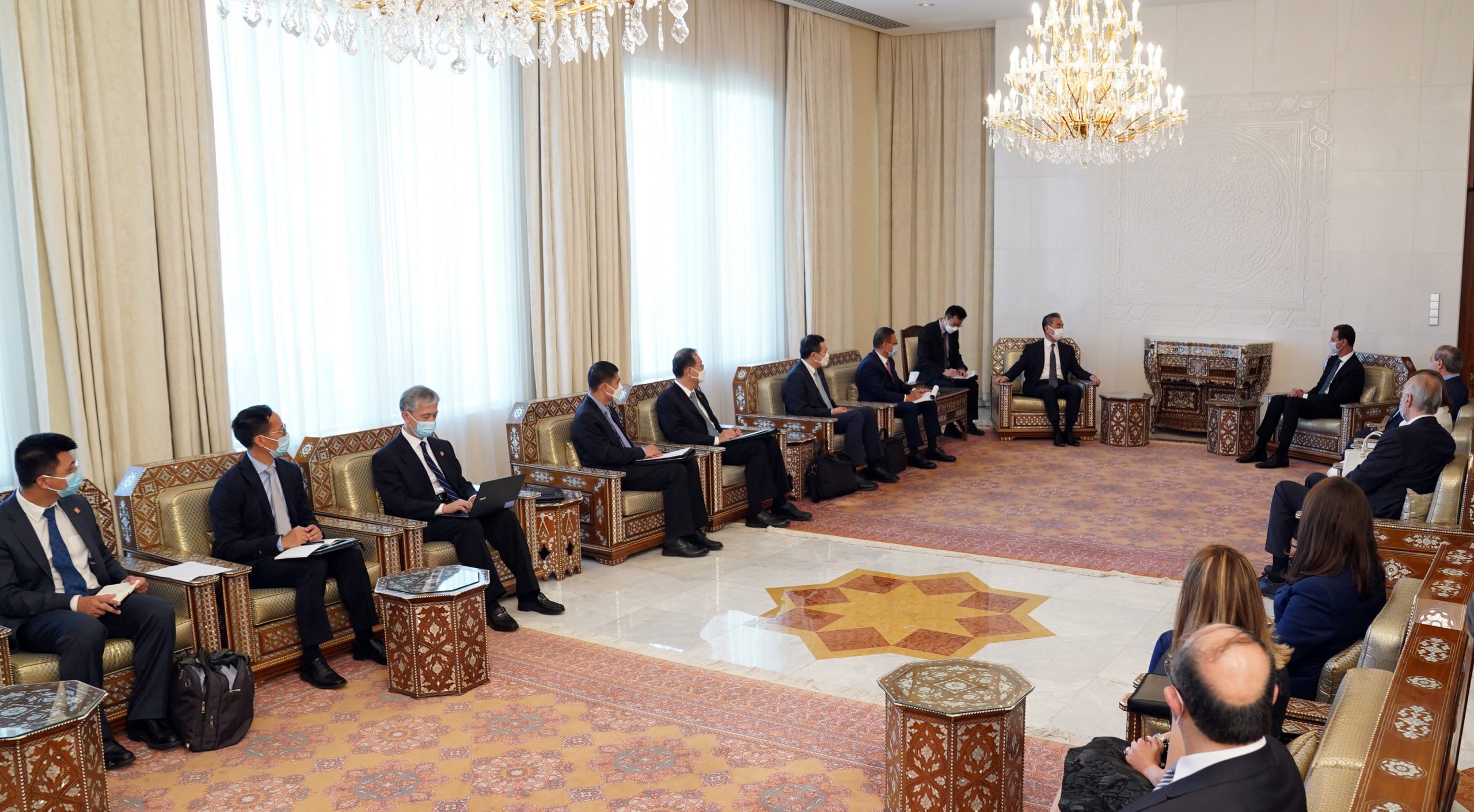 El presidente Bashar al-Assad, recibió hoy a Wang Yi, el ministro de Exteriores de China, y la delegación acompañante.