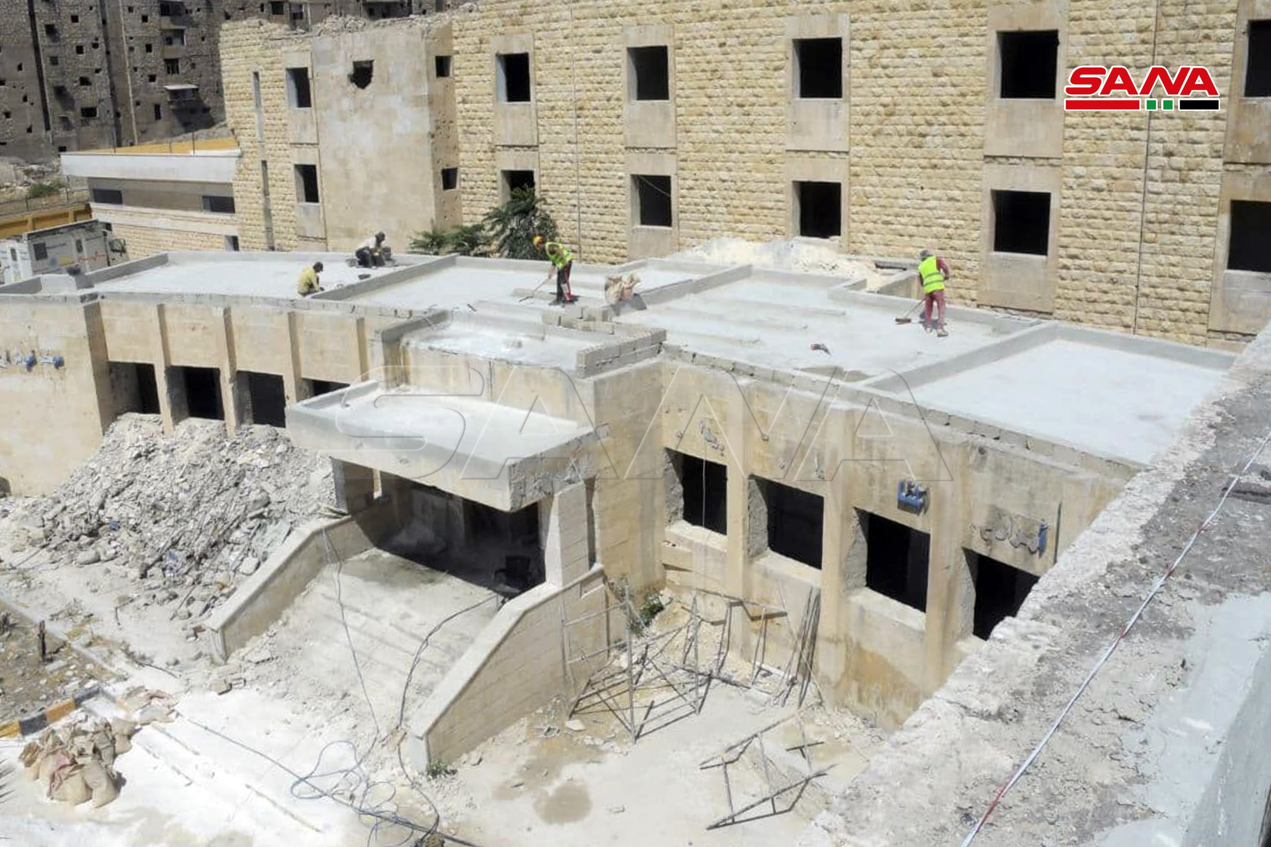 Las obras de restauración y rehabilitación del Hospital Zahi Azraq en la provincia norteña de Alepo continúan de los daños causados por el terrorismo.