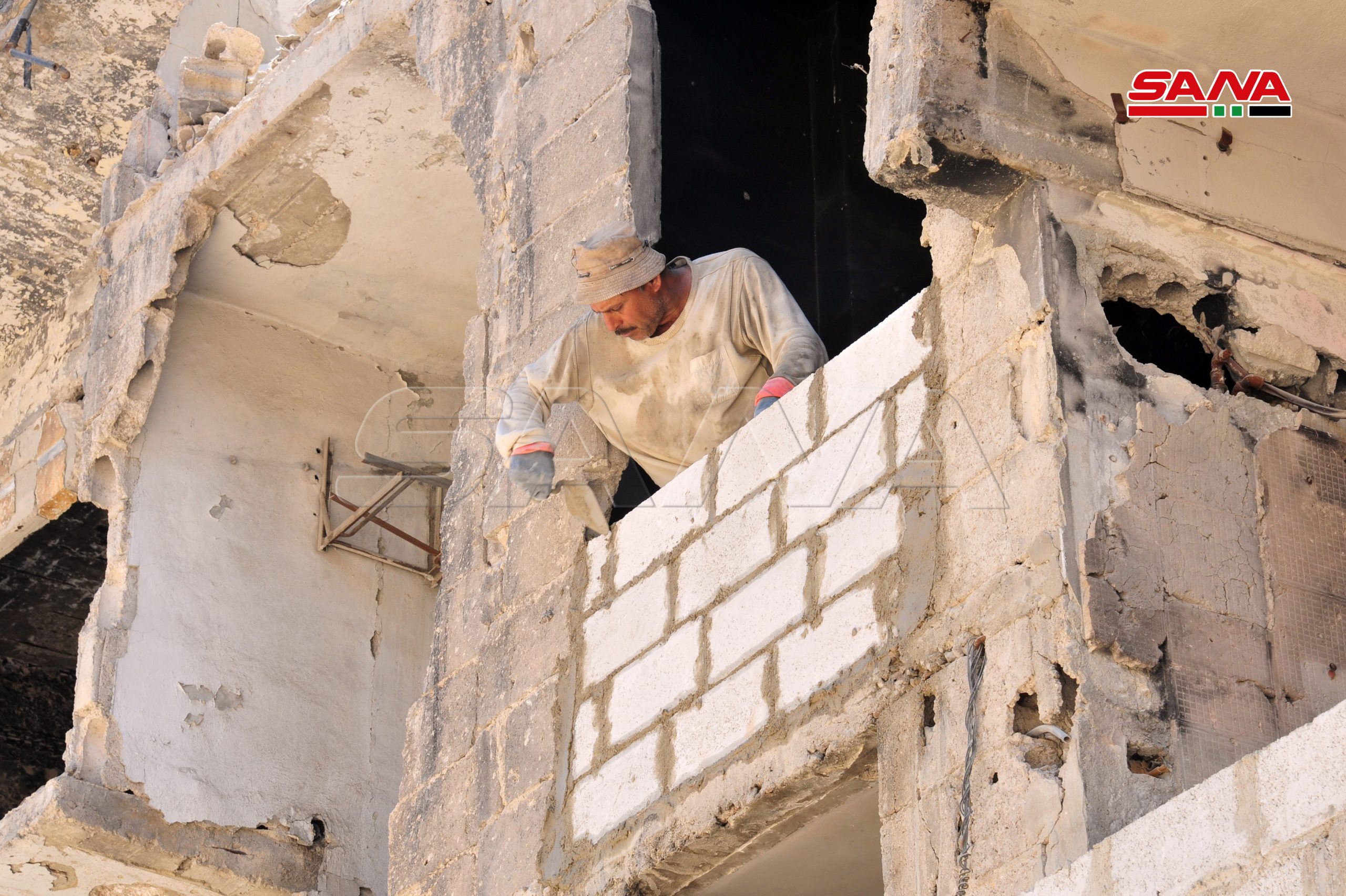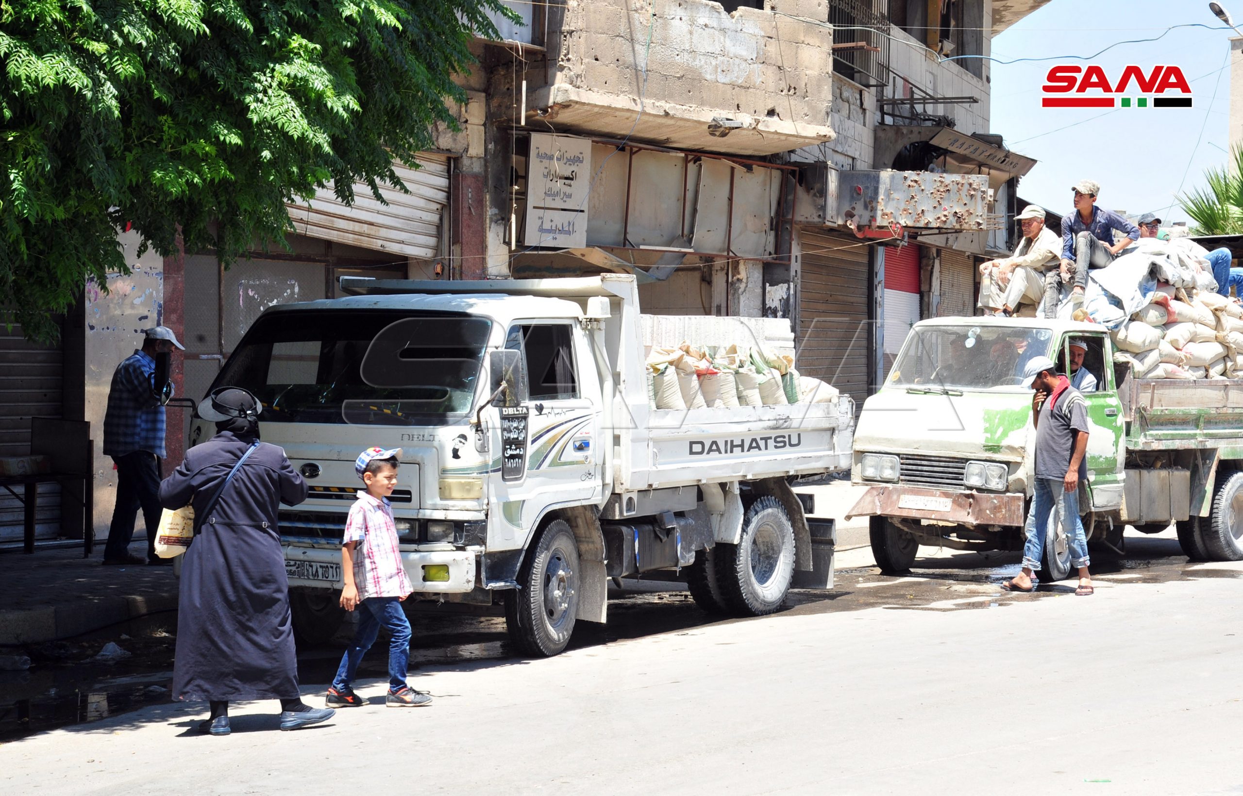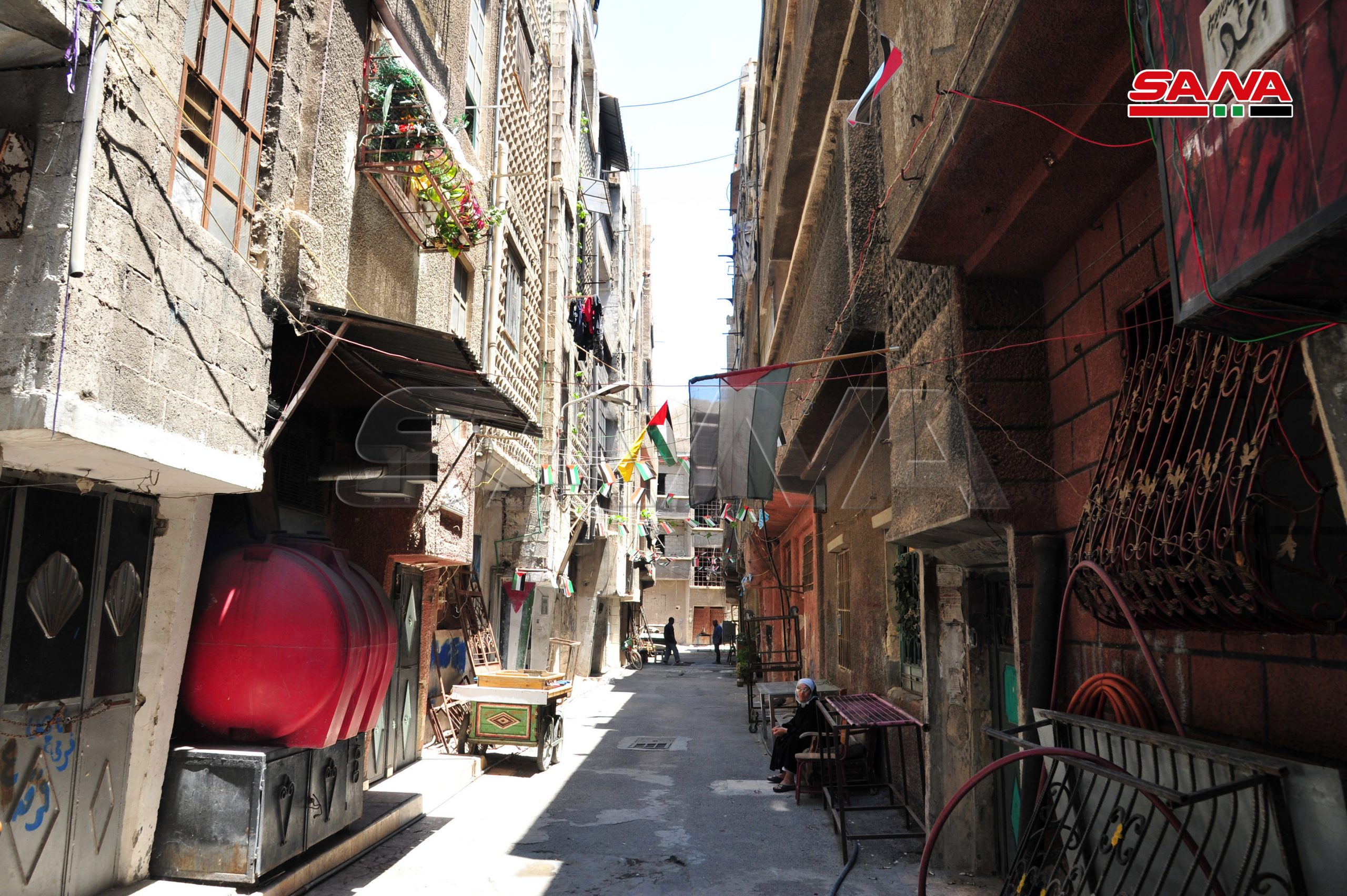 En el marco de los esfuerzos para devolver los desplazados a sus aldeas y ciudades liberadas del terrorismo, miles de desplazados sirios y palestinos retornaron al campamento Yarmuk al sur de Damasco.