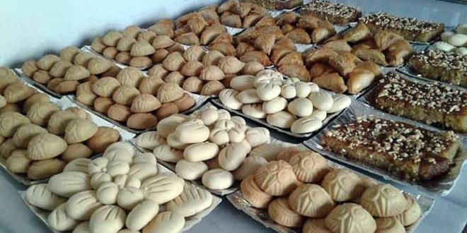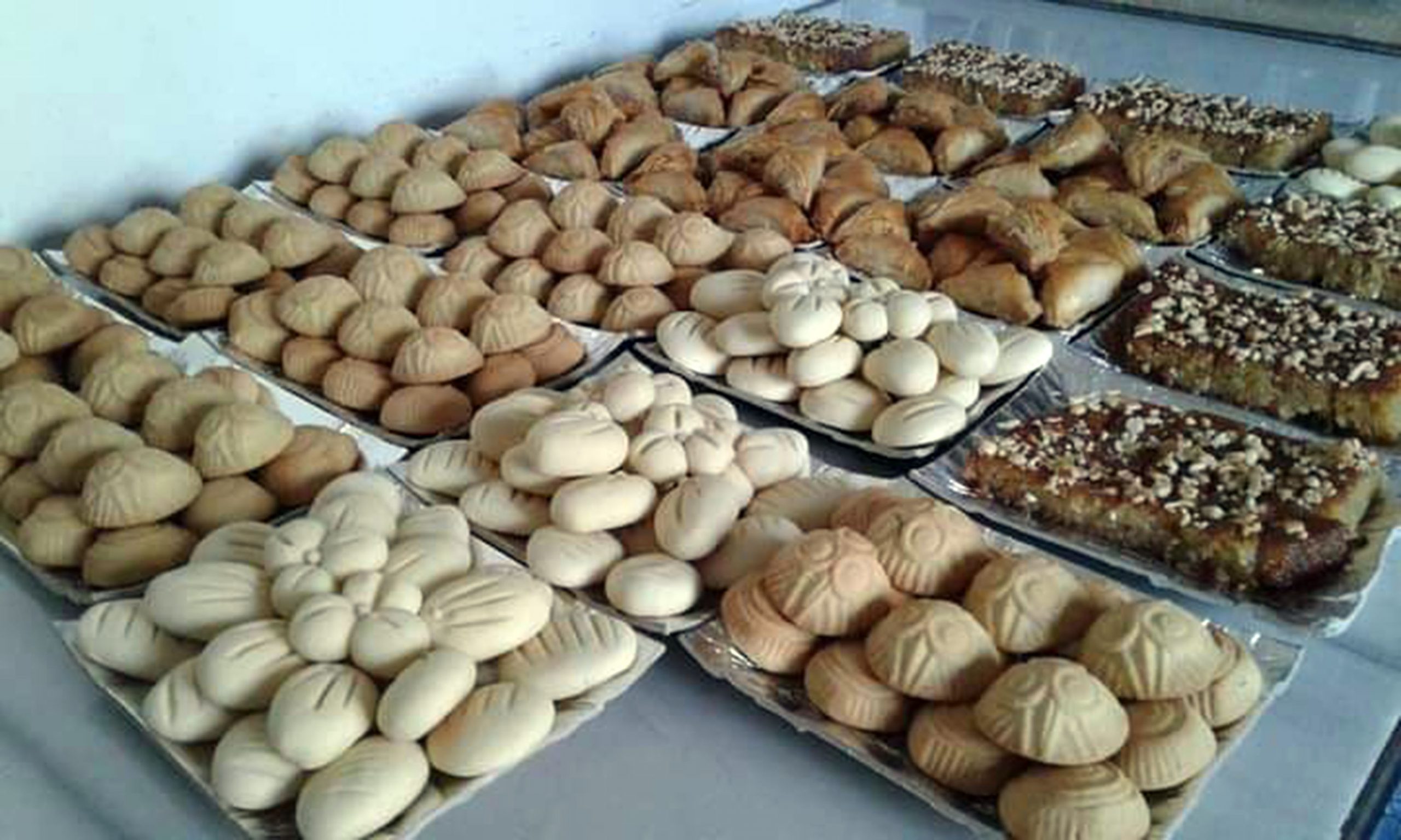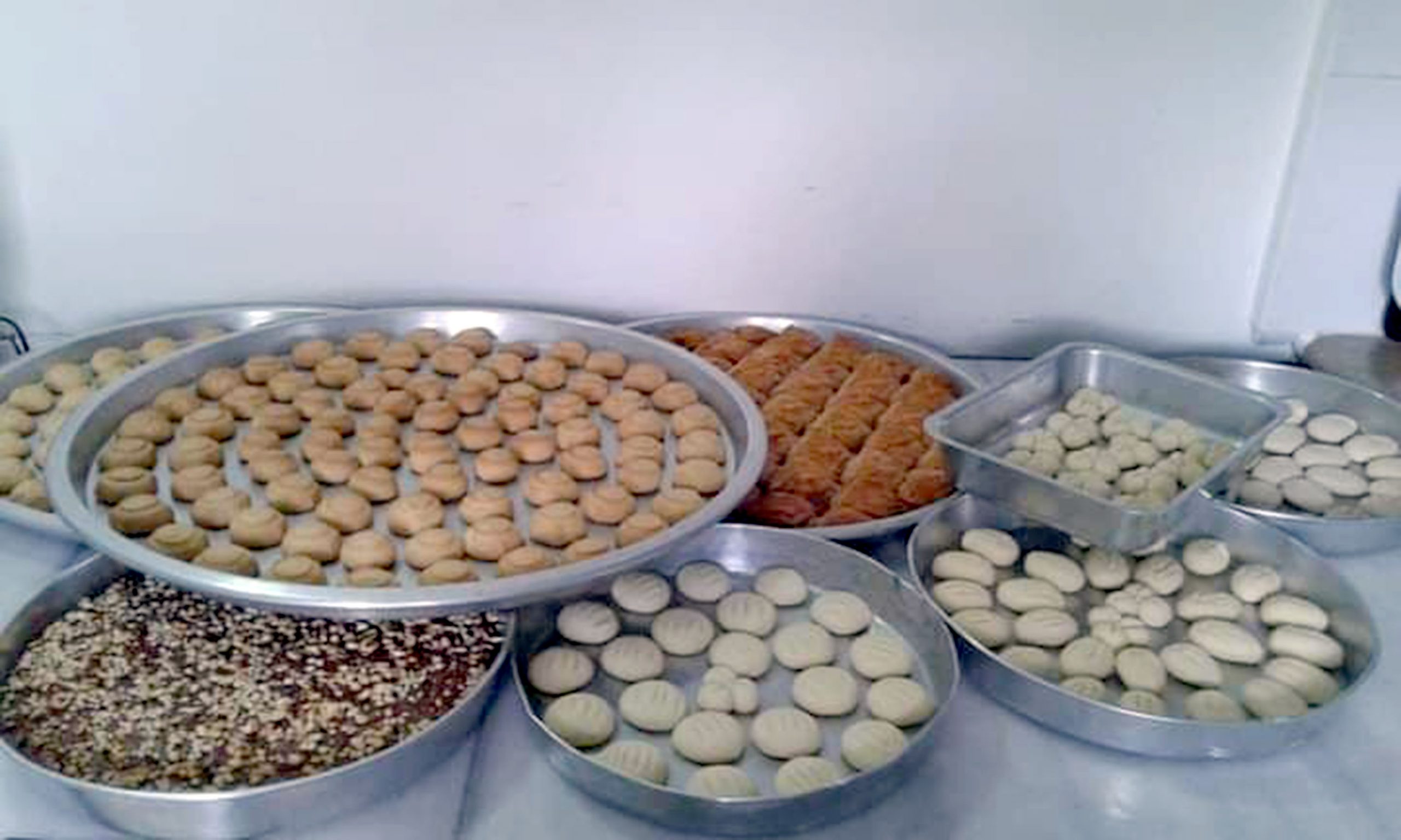 Como todos los años, Sawsan Warda y Emtithal Abbas del municipio costero de Banias reciben los pedidos de dulces caseros, que producen con alta calidad, buen sabor y precios módicos.
