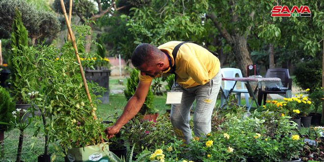 Abdul Qader participa en la Feria Internacional de Flores organizada en el parque Tishreen en la Ciudad de Damasco, donde presenta en su pabellón los diversos tipos de plantas y flores que produce en su vivero como albahaca, fresa, rosa, limón, naranja, granada y pimiento y cardos, además de plantas ornamentales.