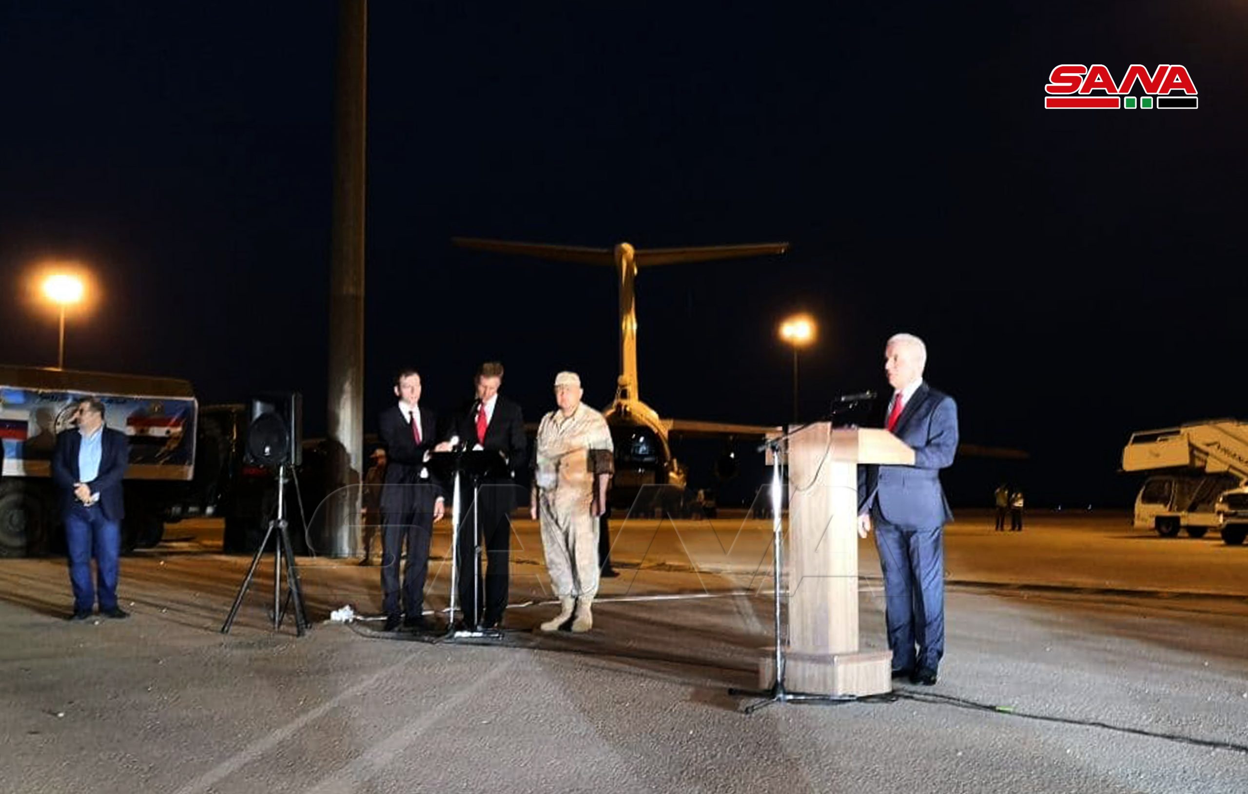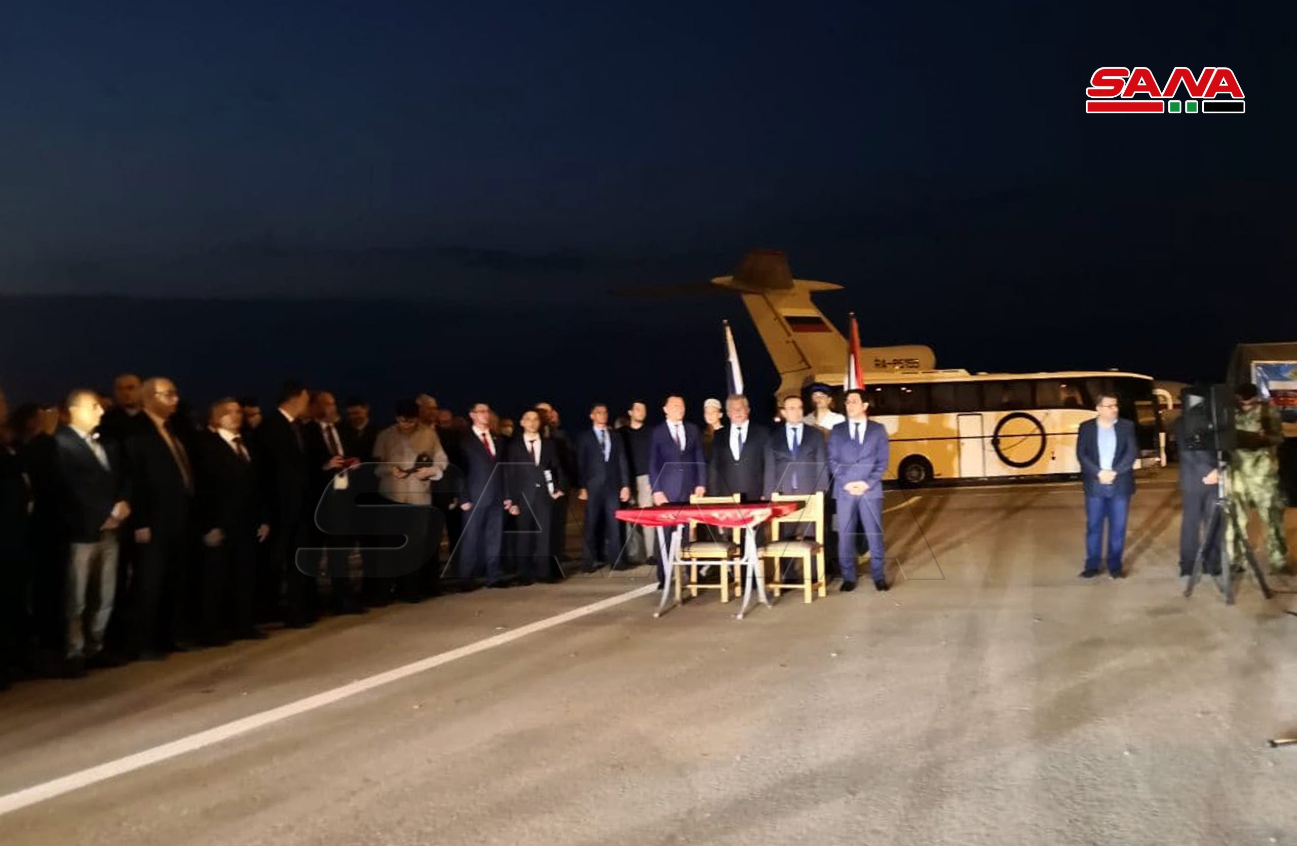 En la ceremonia de recibimiento de la asistencia estuvieron presentes el ministro de Administración Municipal, Hussein Makhlouf, el ministro de Salud, Hassan al-Ghubash, y el embajador ruso en Siria, Alexander Yevimov.