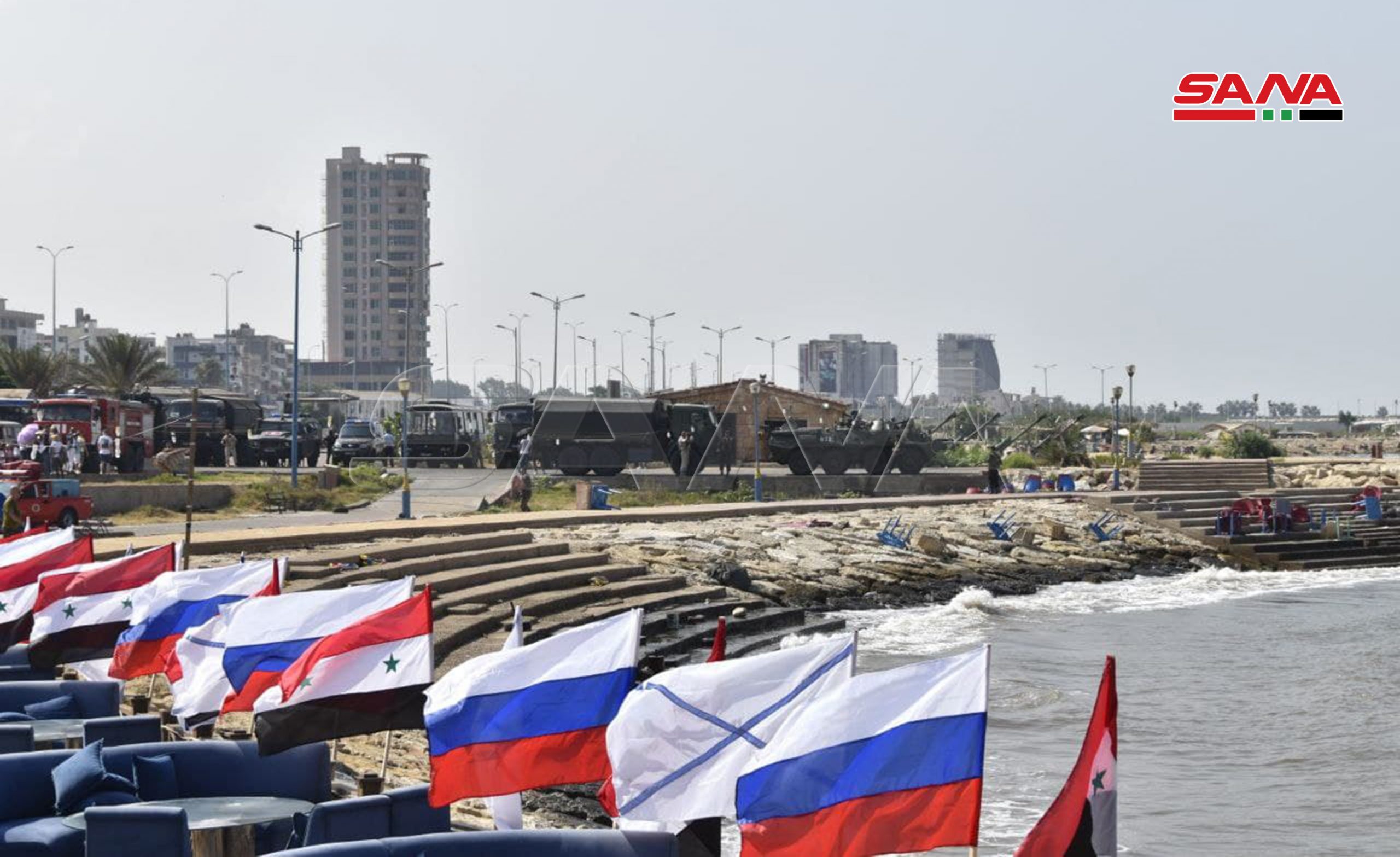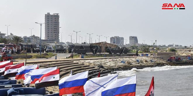 La ceremonia incluyó una demostración naval que simula las acciones de combate reales en la cual tomó parte la fragata Almirante Makarov y buques de guerra modernos, y algunos submarinos pertenecientes a la flota naval de Rusia, además participaron aviones de combate y helicópteros militares y algunos navíos de la Marina siria.