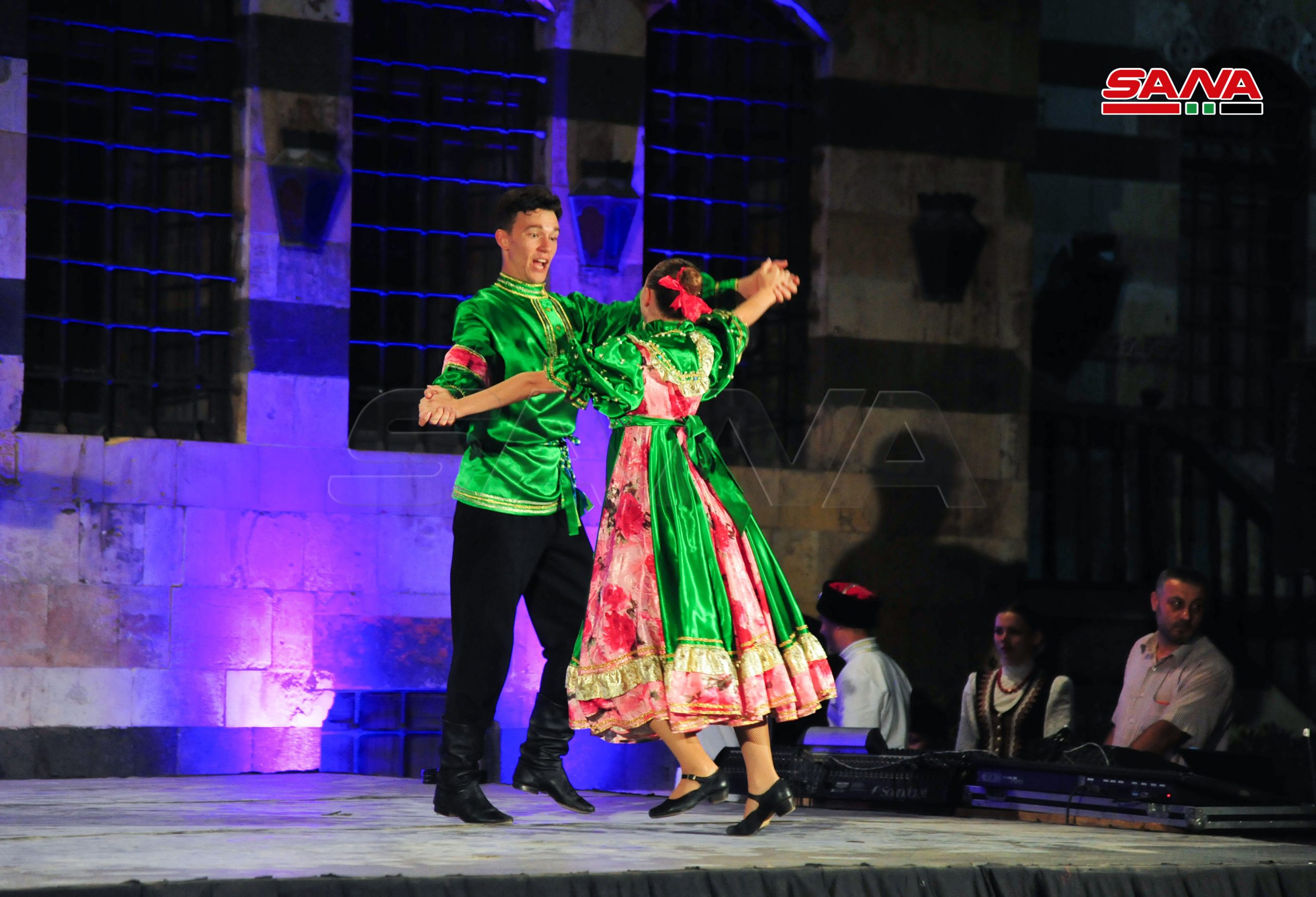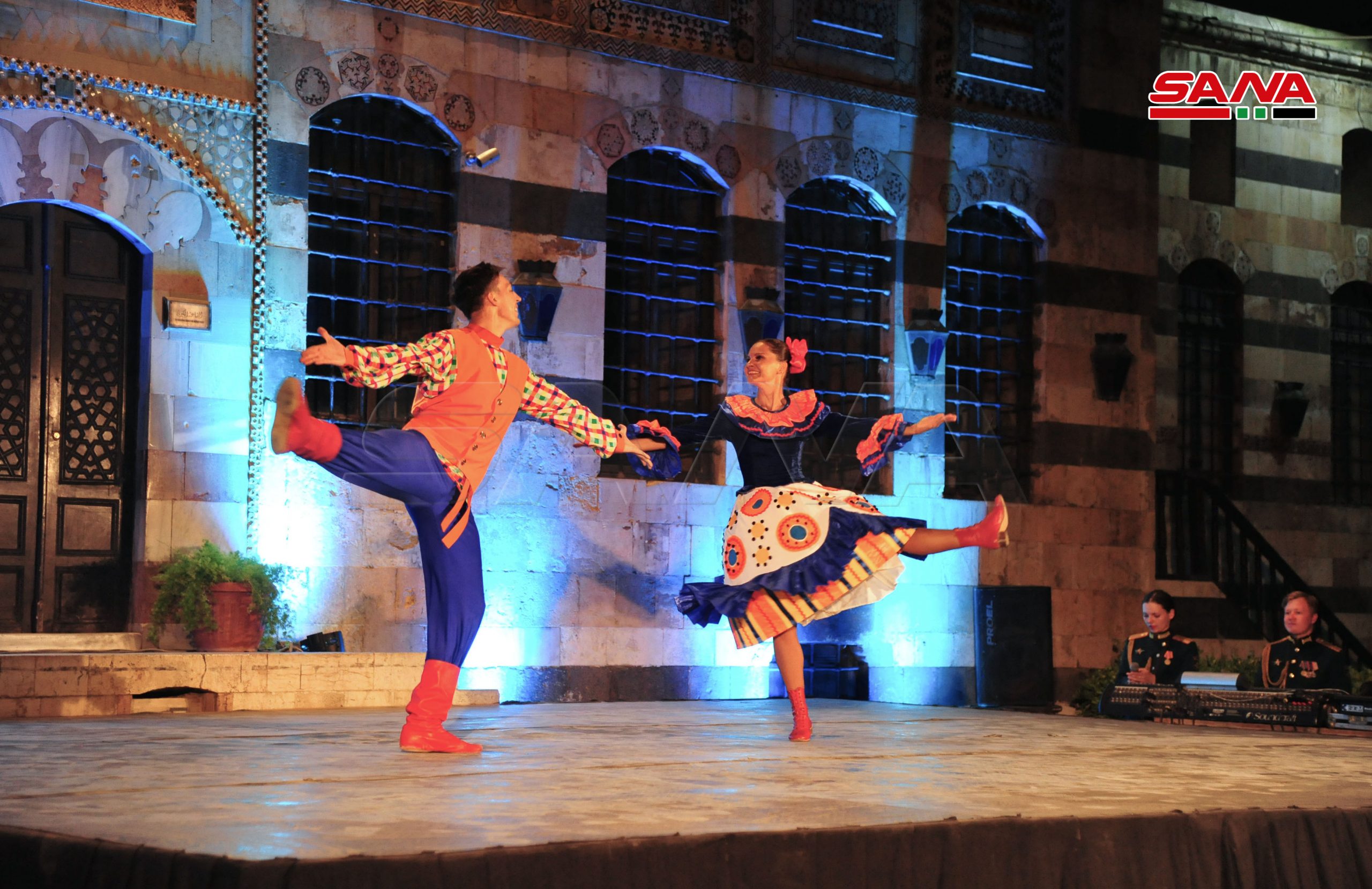 La banda de danza y canto del Cuerpo de Misiles de la Federación de Rusia efectuó un concierto artístico en el emblemático Palacio Al-Azem en Damasco.