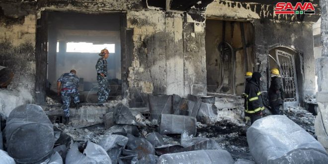 El comandante de la Brigada de Bomberos de Alepo, Mohsen Kinani, dijo en una declaración a SANA que el incendio provocó la muerte de cinco personas mientras siete sufrieron quemaduras que oscilan entre medias y severas.