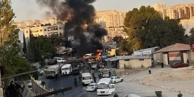 Una explosión ocurrió esta mañana en un autobús de transporte militar en la entrada del suburbio Masaken Al-Haras, en las afueras de Damasco.