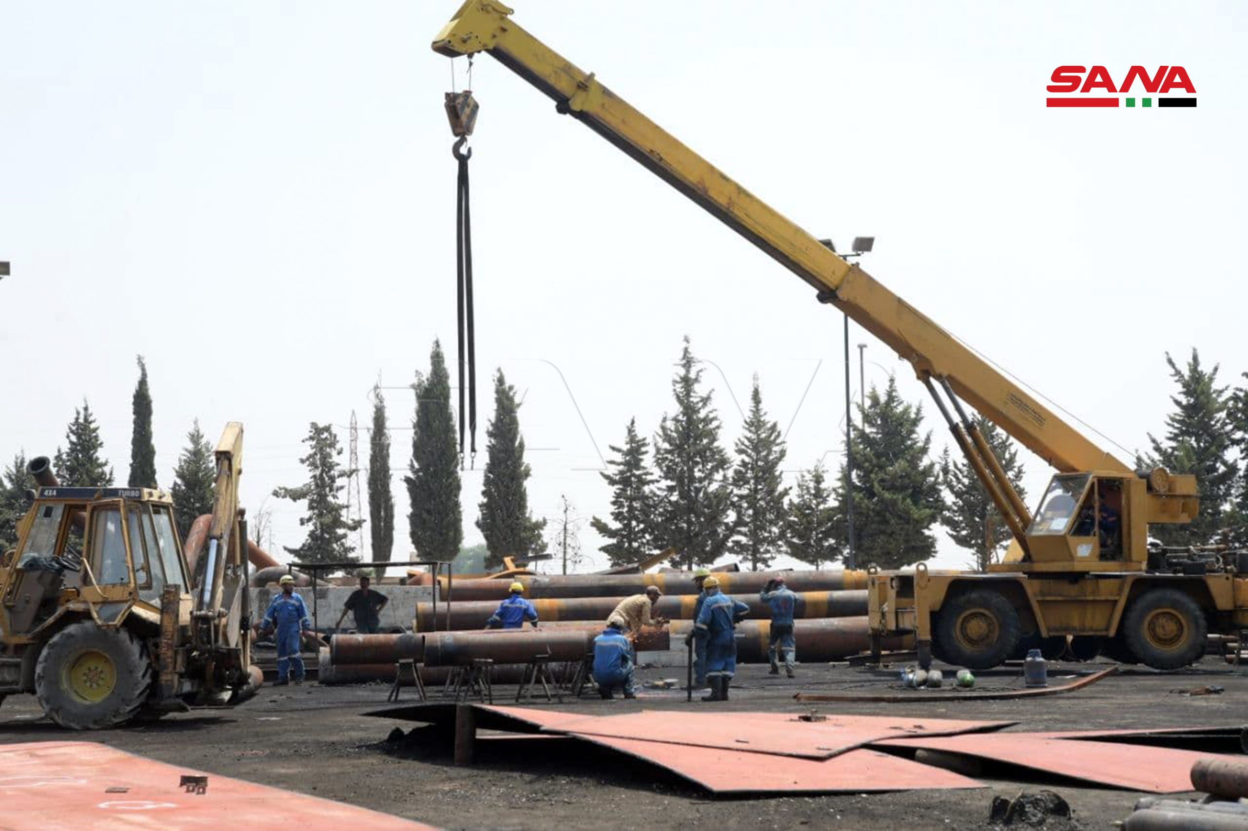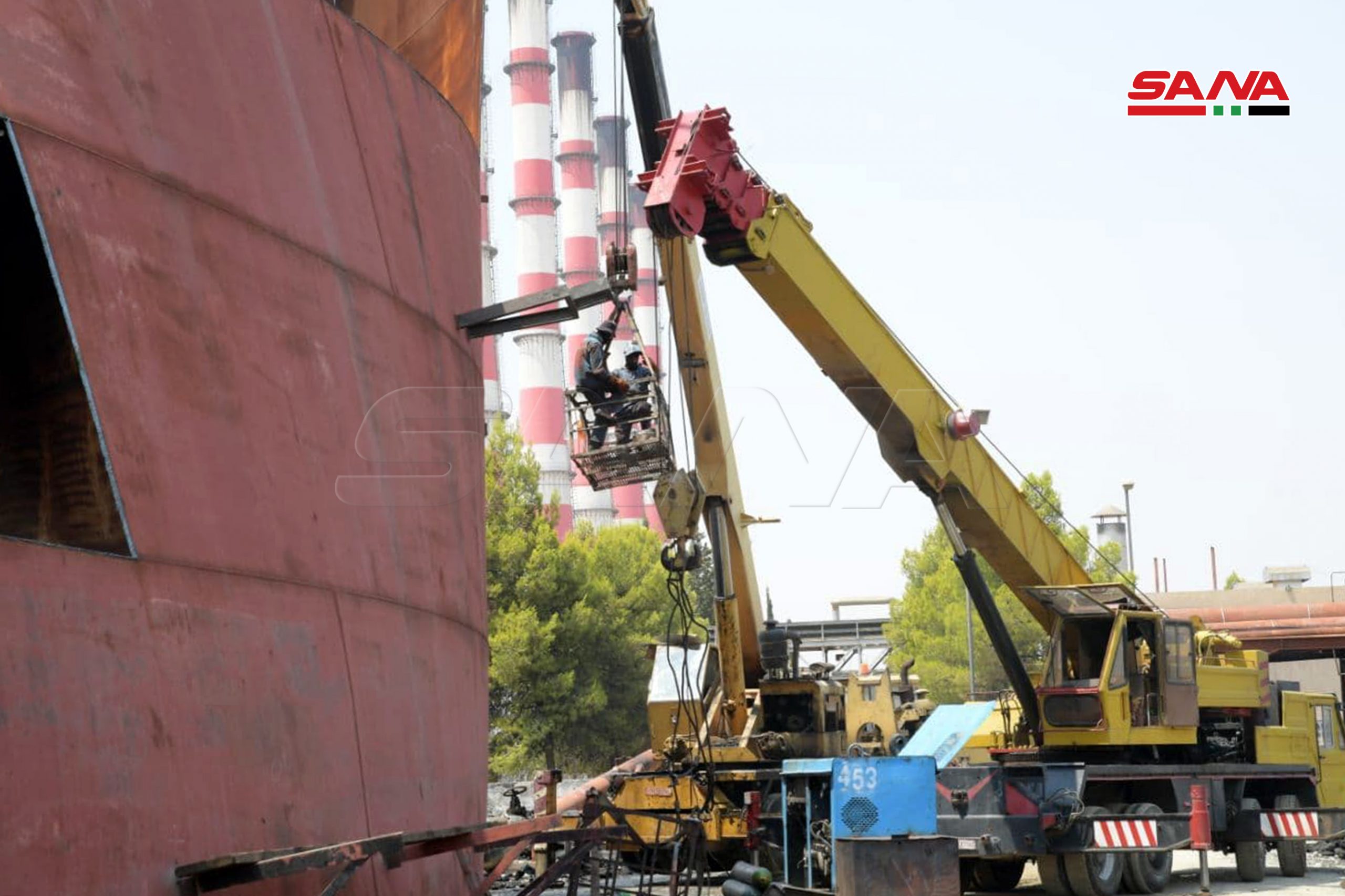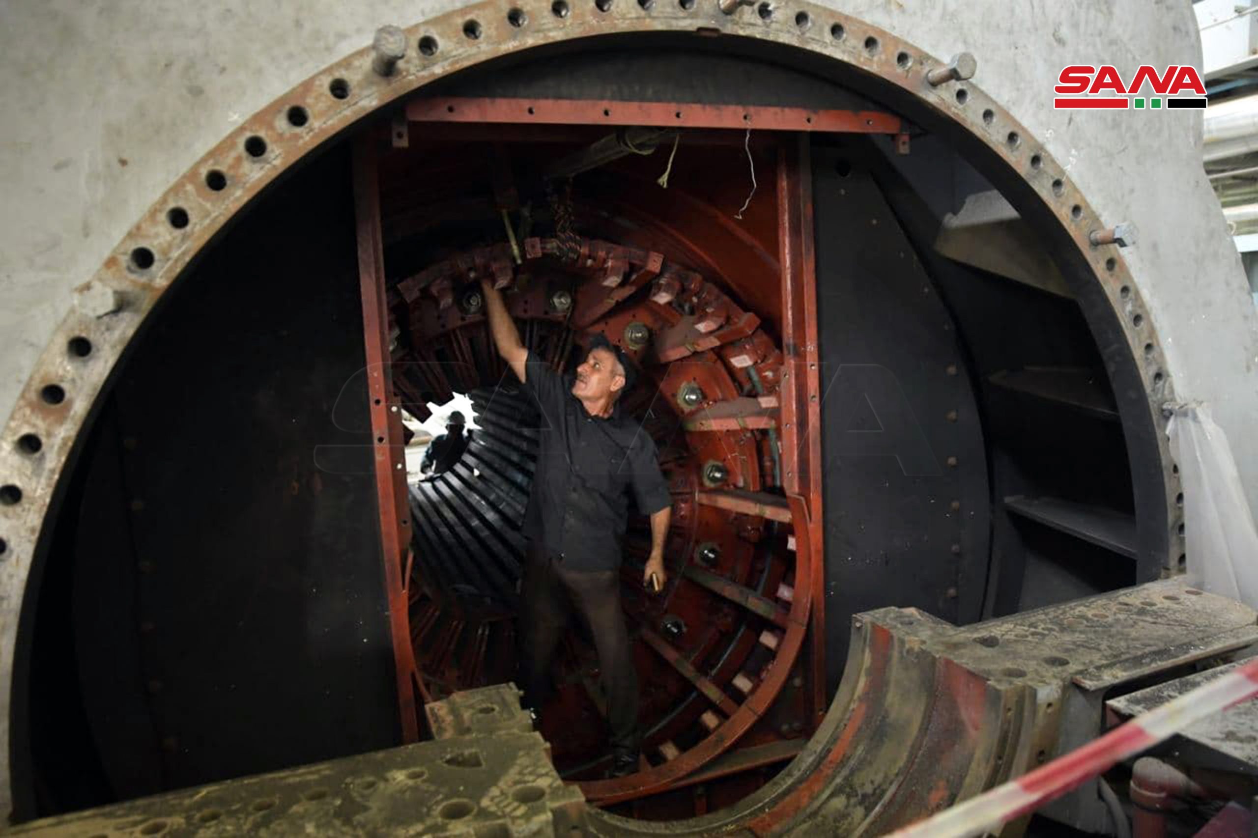 Tras la llegada del primer envío de equipos básicos necesarios para la reconstrucción de la Central Termoeléctrica de Alepo, los trabajadores del Ministerio de Electricidad comenzaron a instalar los equipos enviados para volver la estación al servicio, después de haber sida casi totalmente destruida por los terroristas.