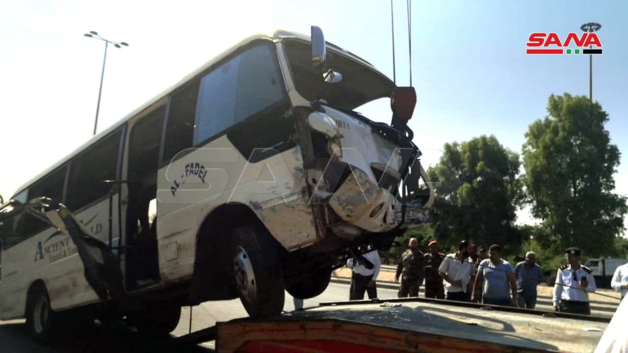 El general de brigada Asef Hababa, comandante adjunto del Cuerpo de Bomberos de Damasco, dijo a la corresponsal de SANA que un coche tipo Hyundai Avanti chocó con un autobús de 24 pasajeros de capacidad en la carretera entre Damasco y Beirut.