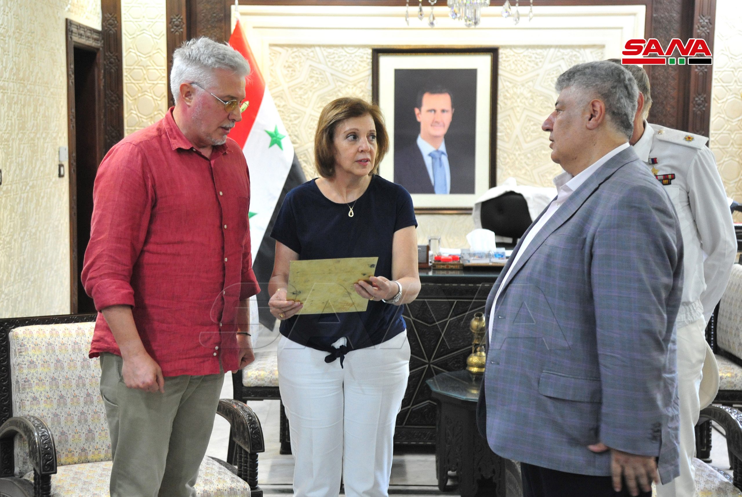 El Ministerio de Cultura de Siria recibió un busto de bronce del arqueólogo e investigador mártir Khaled al-Asaad, el cual fue entregado por la Asociación de Veteranos de Rusia como regalo conmemorativo en homenaje a una figura con gran aporte a la civilización de Siria.