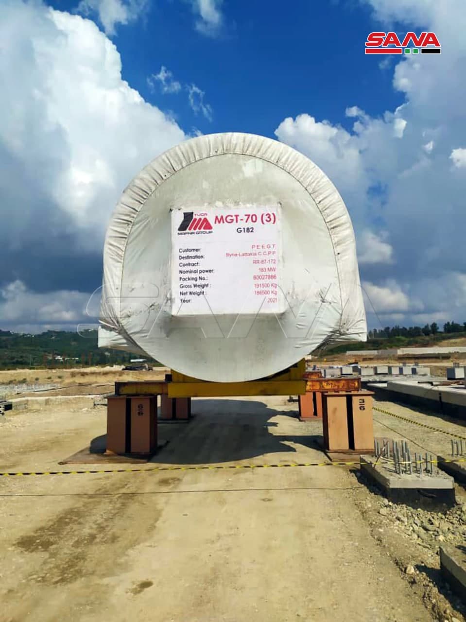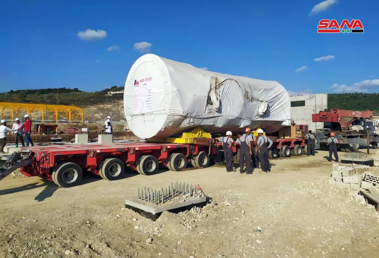 Después de la llegada de la primera turbina de gas al sitio del proyecto de central eléctrica de Rasteen en la provincia costera de Latakia, los técnicos y trabajadores continúan a ritmo acelerado las obras de construcción de la planta.