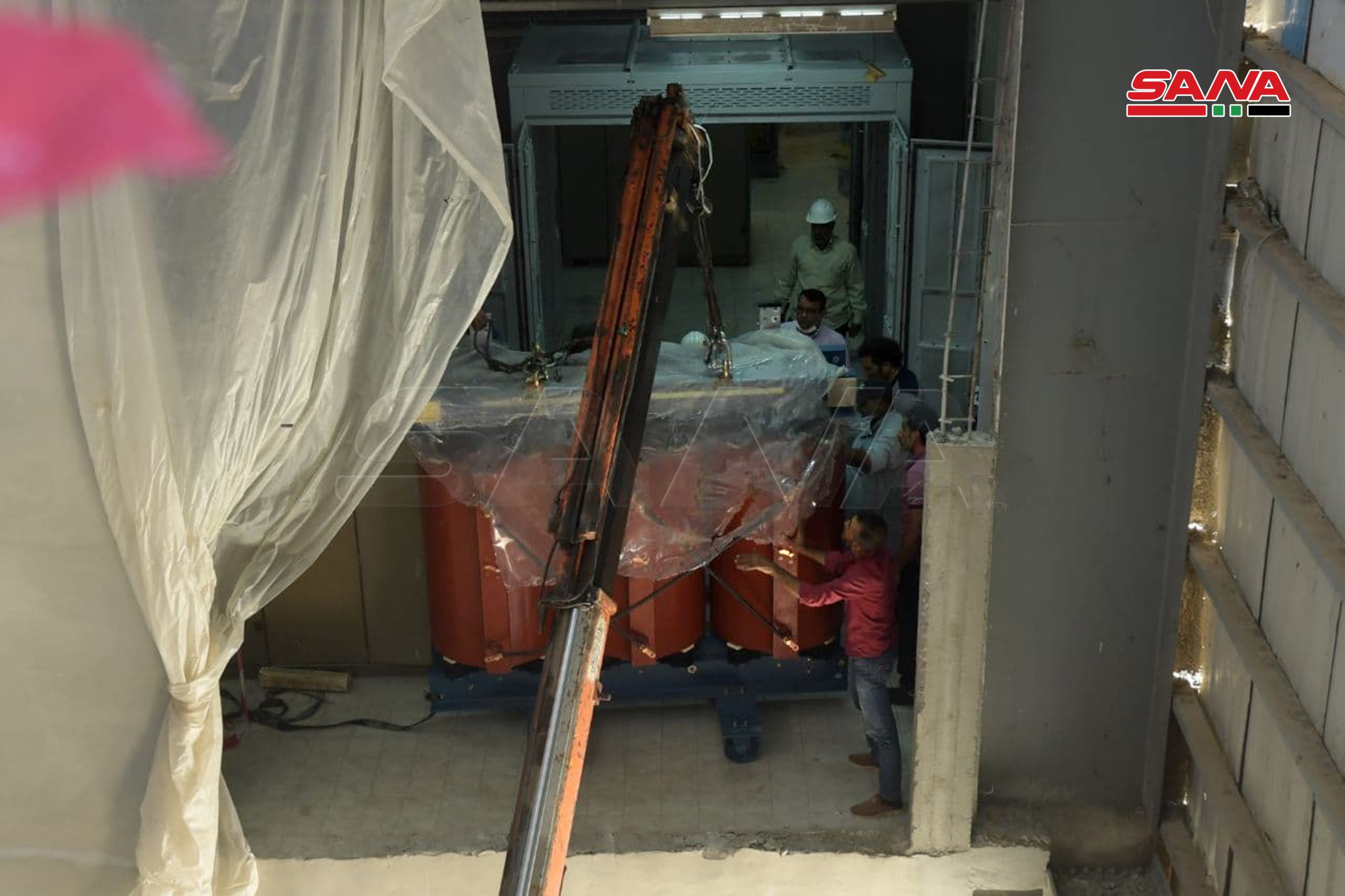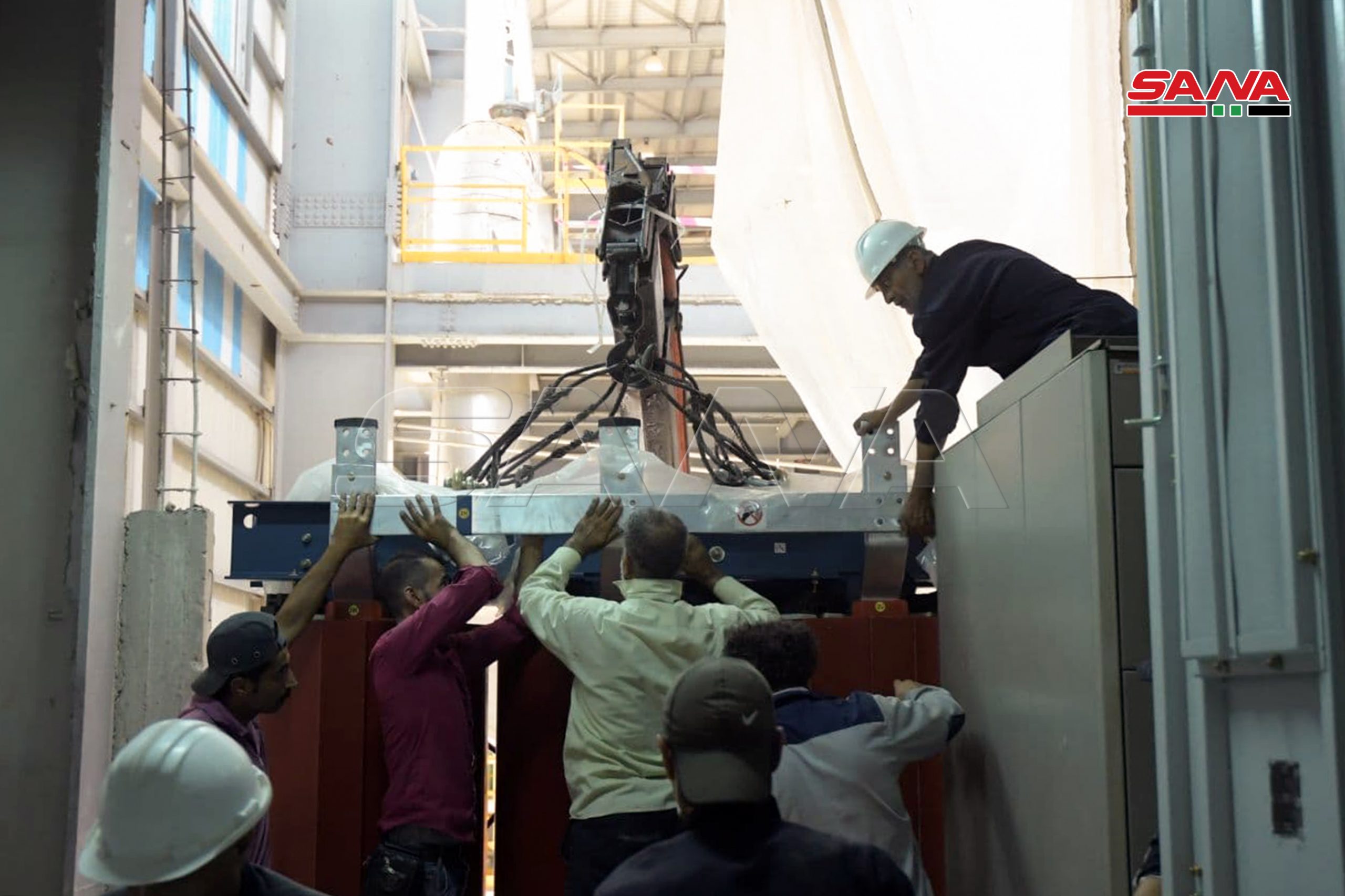 Un segundo lote de equipos llegó hoy a la Central Termoeléctrica de Alepo que está siendo reconstruida gracias a un contrato firmado con un país amigo.