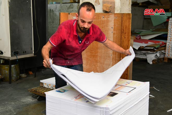 A pesar de la guerra terrorista y las injustas y unilaterales medidas económicas coercitivas contra Siria que hicieron exorbitante el costo de impresión de un libro de texto, miles de estudiantes en la etapa de educación básica encuentran sus libros listos al inicio del año escolar, y los reciben de forma gratuita.